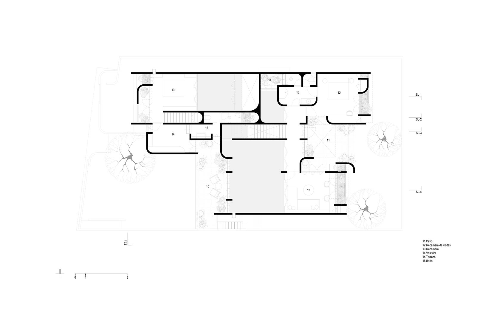 The site is bordered on three sides by adjacent residences, while its western edge opens toward a main street overlooking an undeveloped natural area. This condition informed an architectural strategy that balances enclosure and permeability: blind façades to the north and south protect privacy, while porous east and west façades dissolve the boundary between interior and exterior through terraces, balconies, patios, and vegetation.