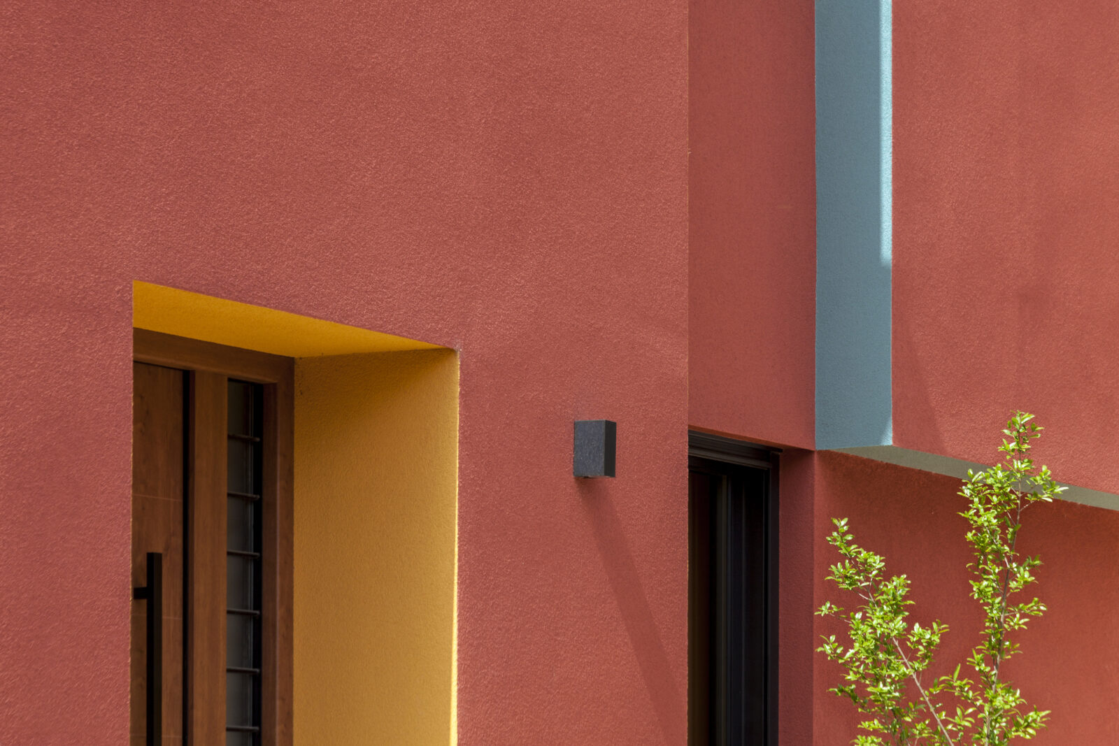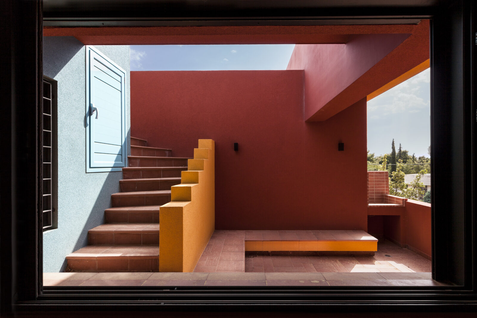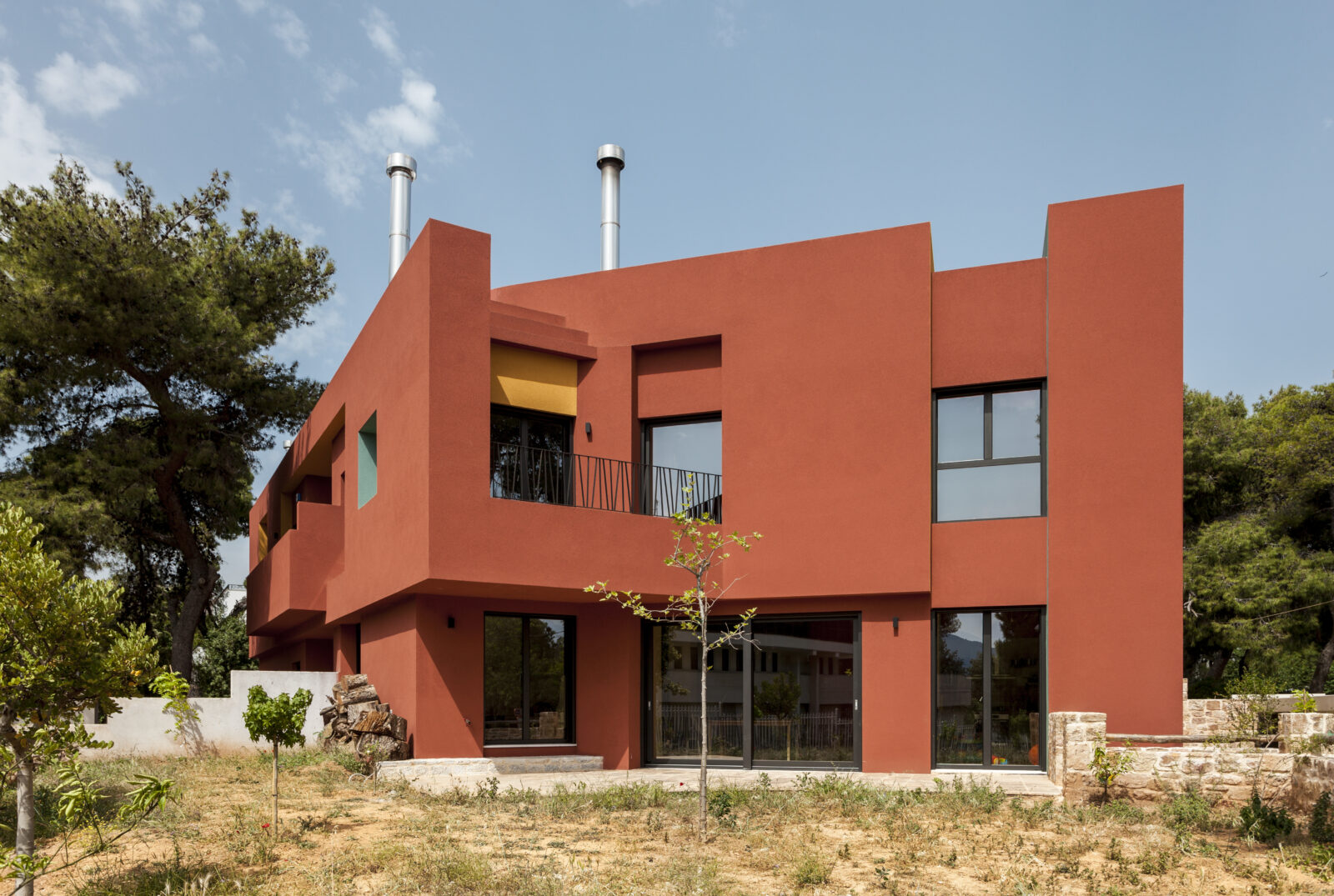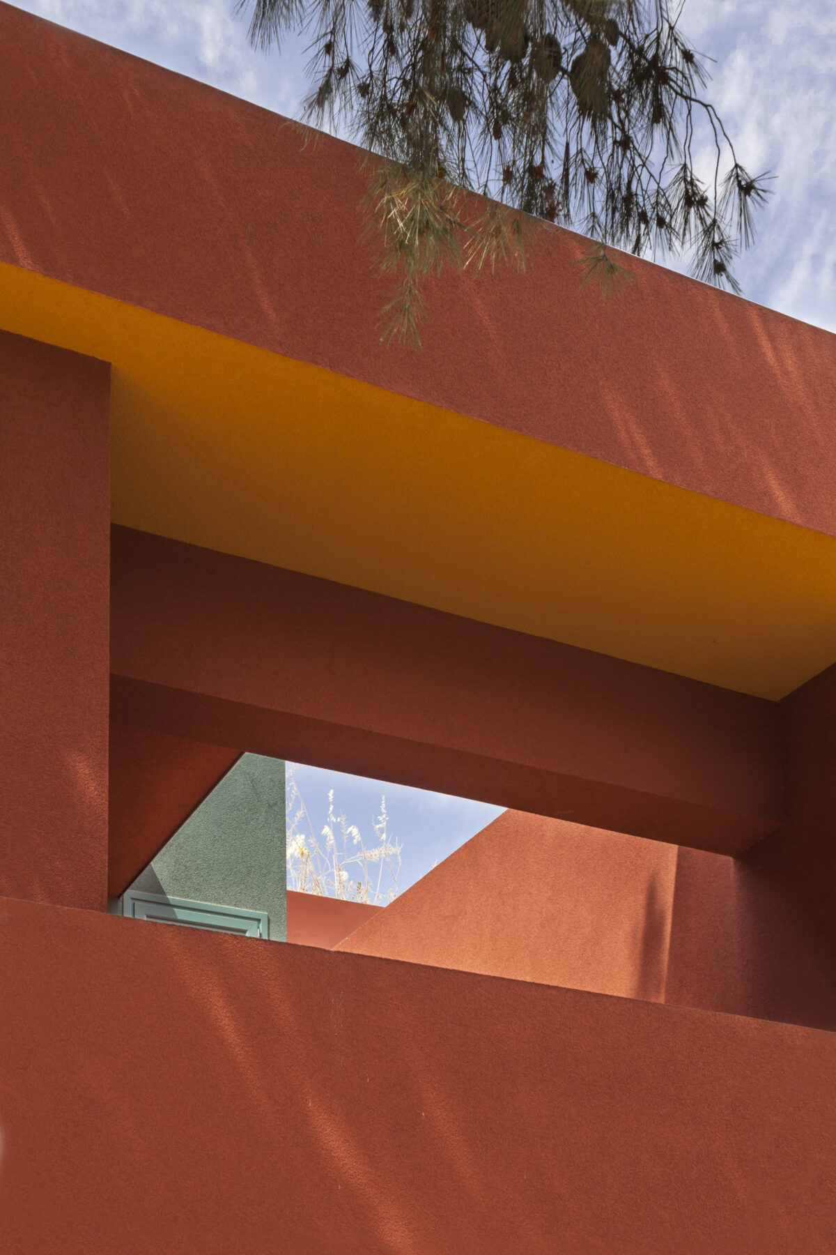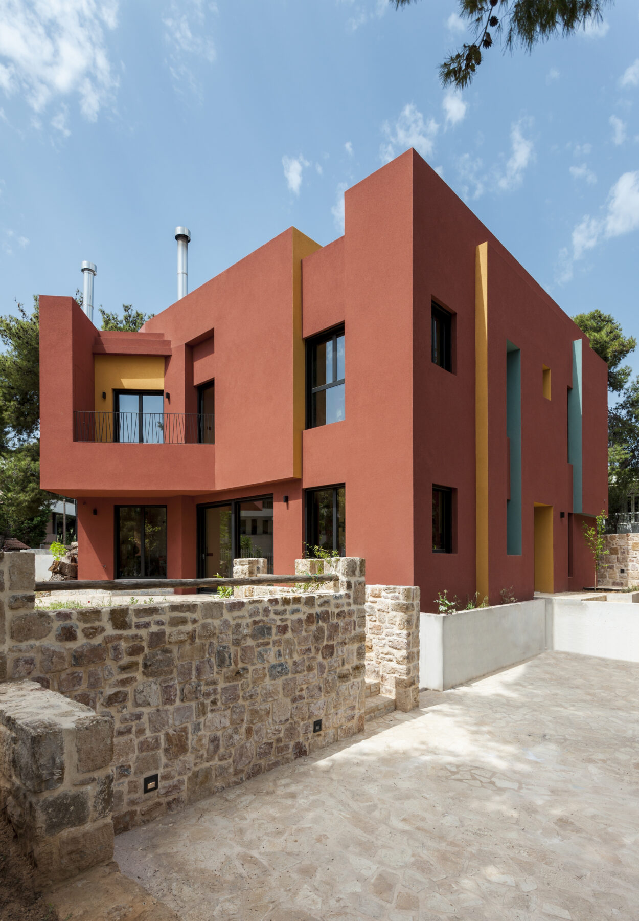 A dominant feature of the building is its color. Inside the quiet, green and tranquil environment of P. Psychiko, we aim to harmonize the building in its context but at the same time also to mark it. This way, the building is painted with earthy but vibrant colors: red, orange, blue-green. It is not just a building any more, it gains movement and life. It works as a living organism with the ability to provoke feelings and to influence the life of both its users and non-users.