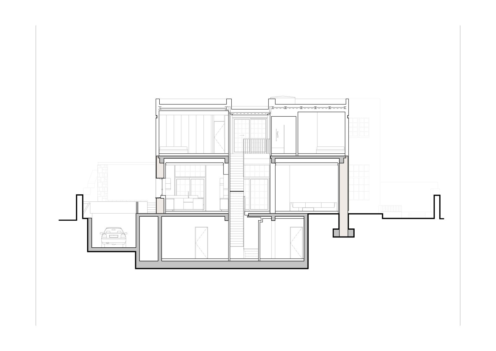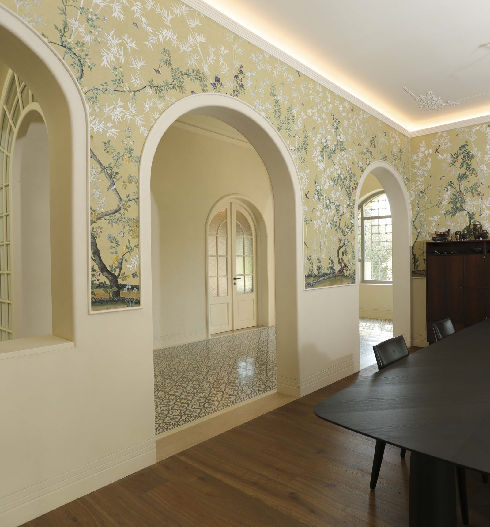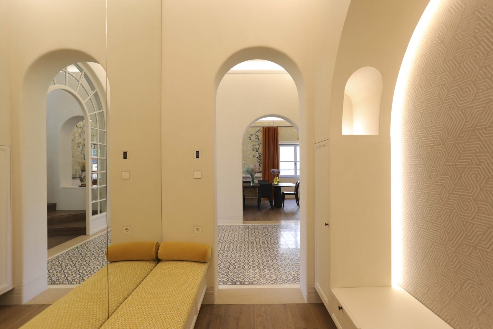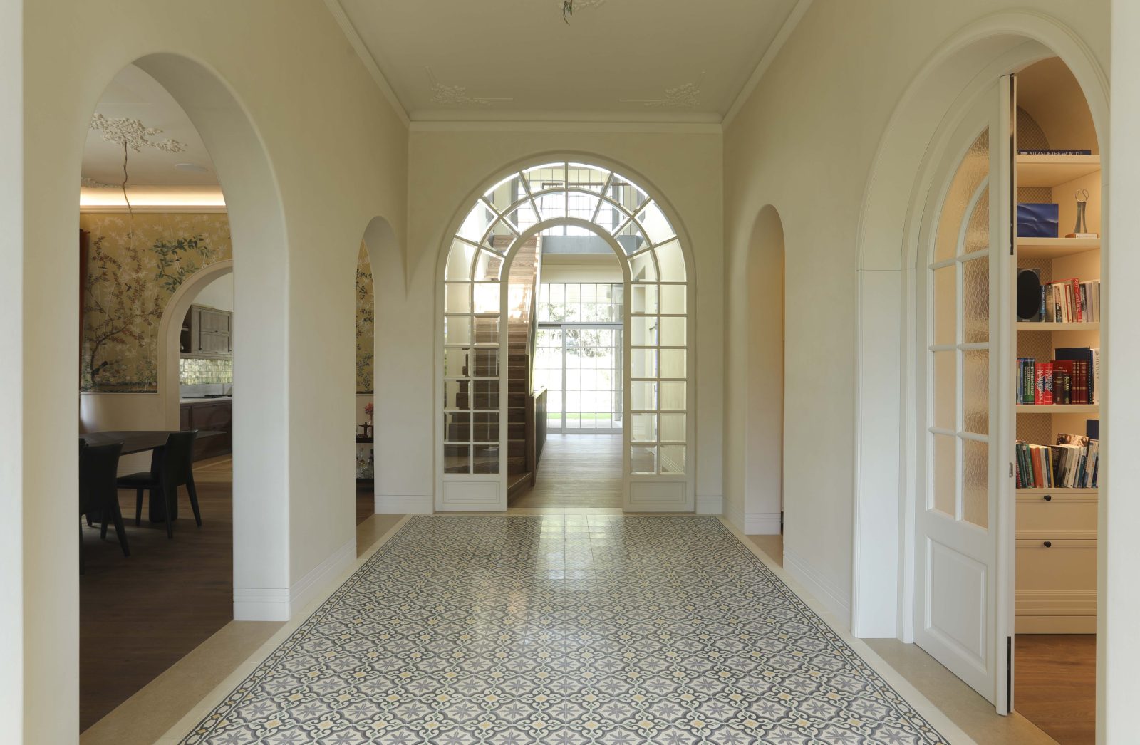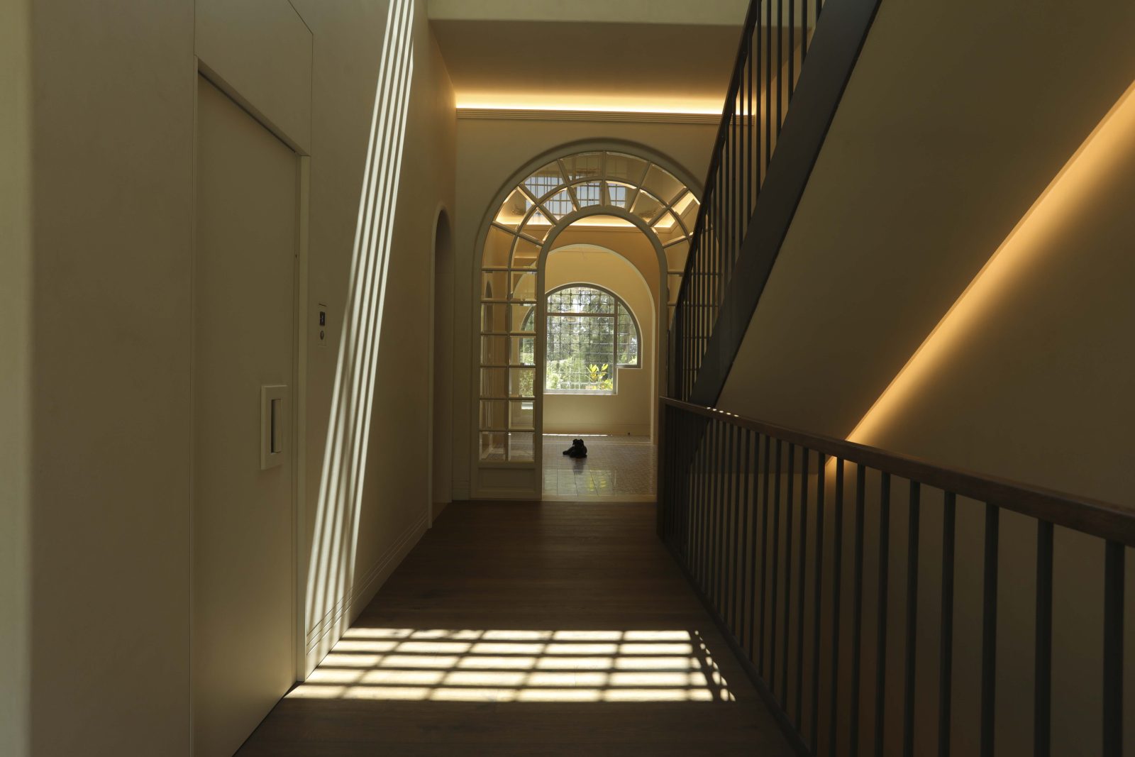 The new unified residence incorporates typological elements from the original structure that carry valuable, enduring values. The strong pre-existing entrance axis, with its characteristic interior arches that ceremoniously receive the visitor and guide them through the various rooms, is preserved and reinforced.