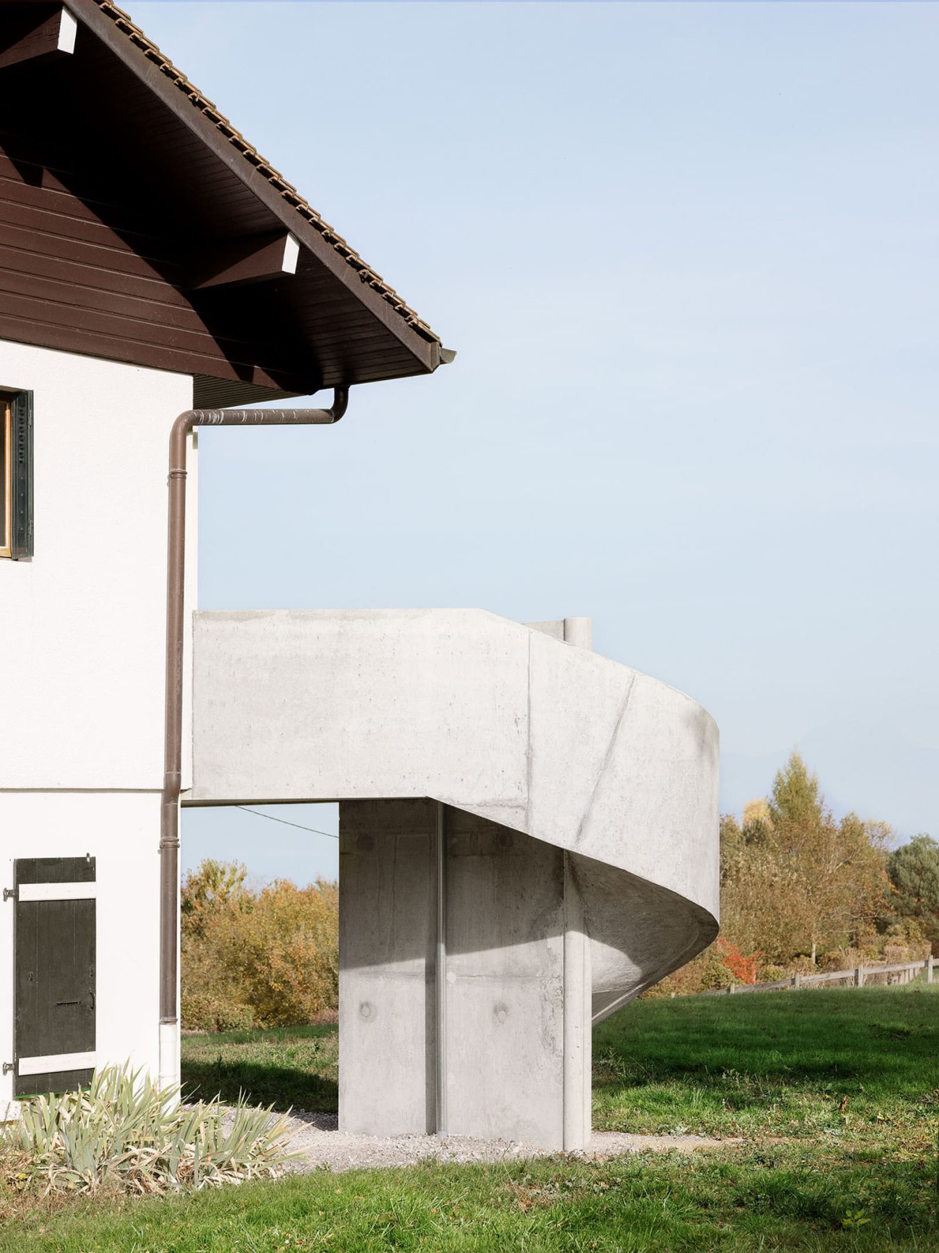 ANEM by Alors Studio is a concrete intervention on an existing archetypal residence in Haute-Savoie, France. It is a parasitic structure, wrapped around the house, that connects the interior living space with the garden and mountain views. The architectural approach seeks to integrate contemporary elements within a historic setting.