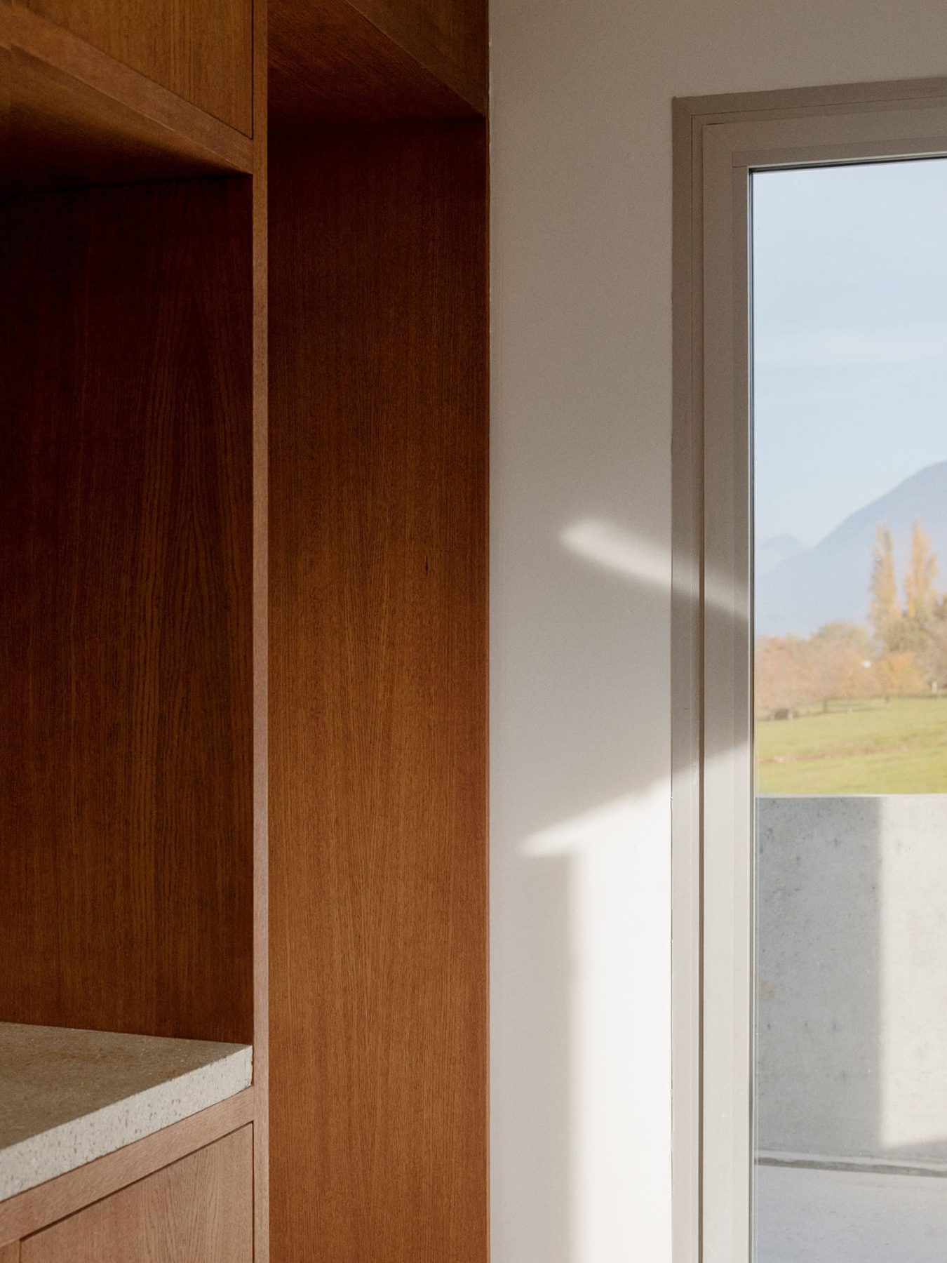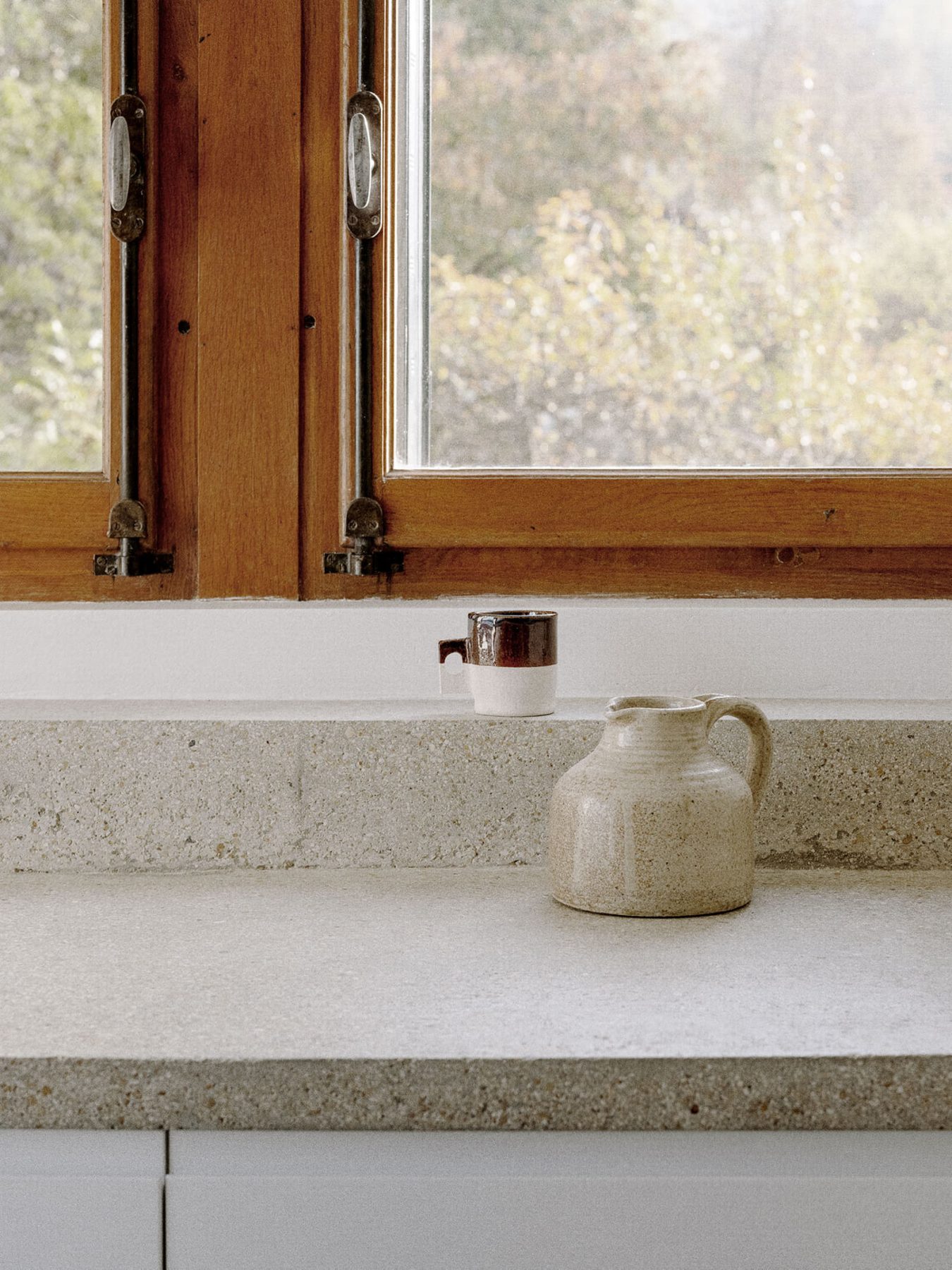 Inside, the concrete materiality comes back in the countertop of the kitchen.