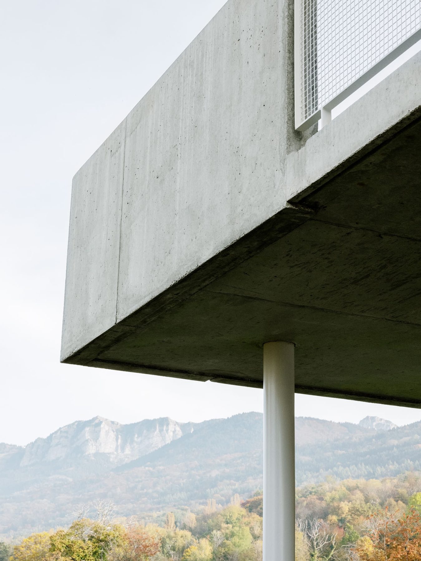 The mesh associated with the large wood handrail is an hommage, and is present on some other buildings in the surroundings, as a traditional detail from the 70’s architecture of the region.
