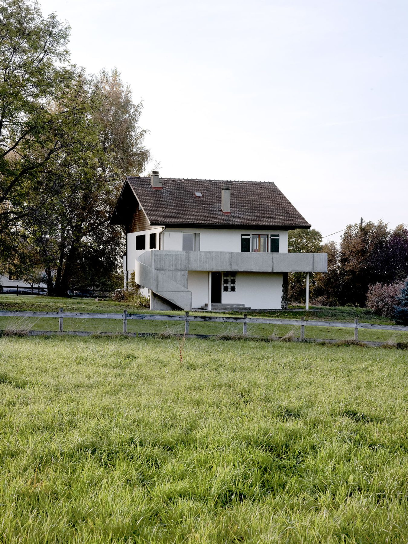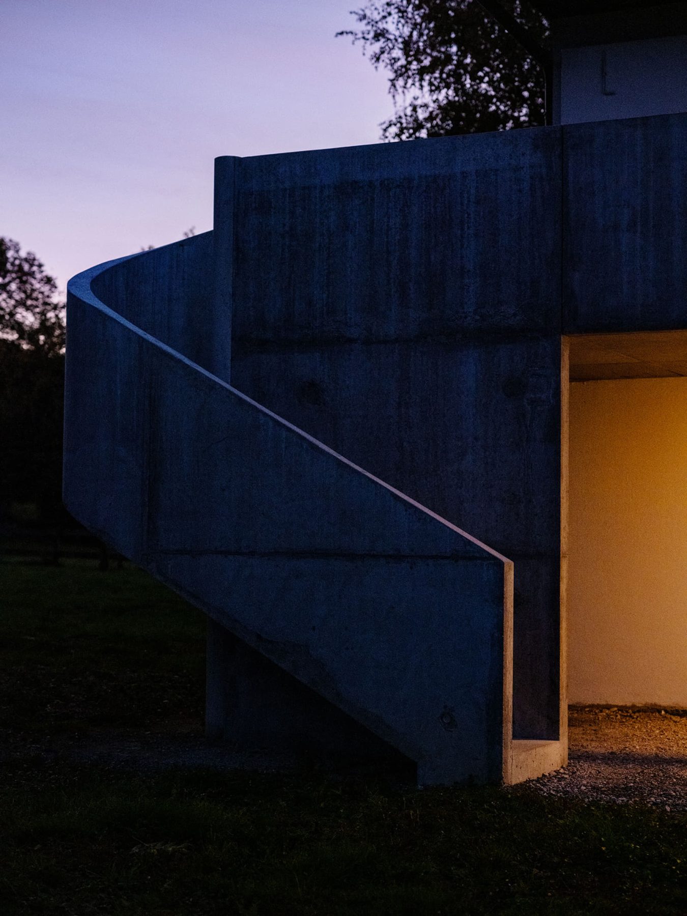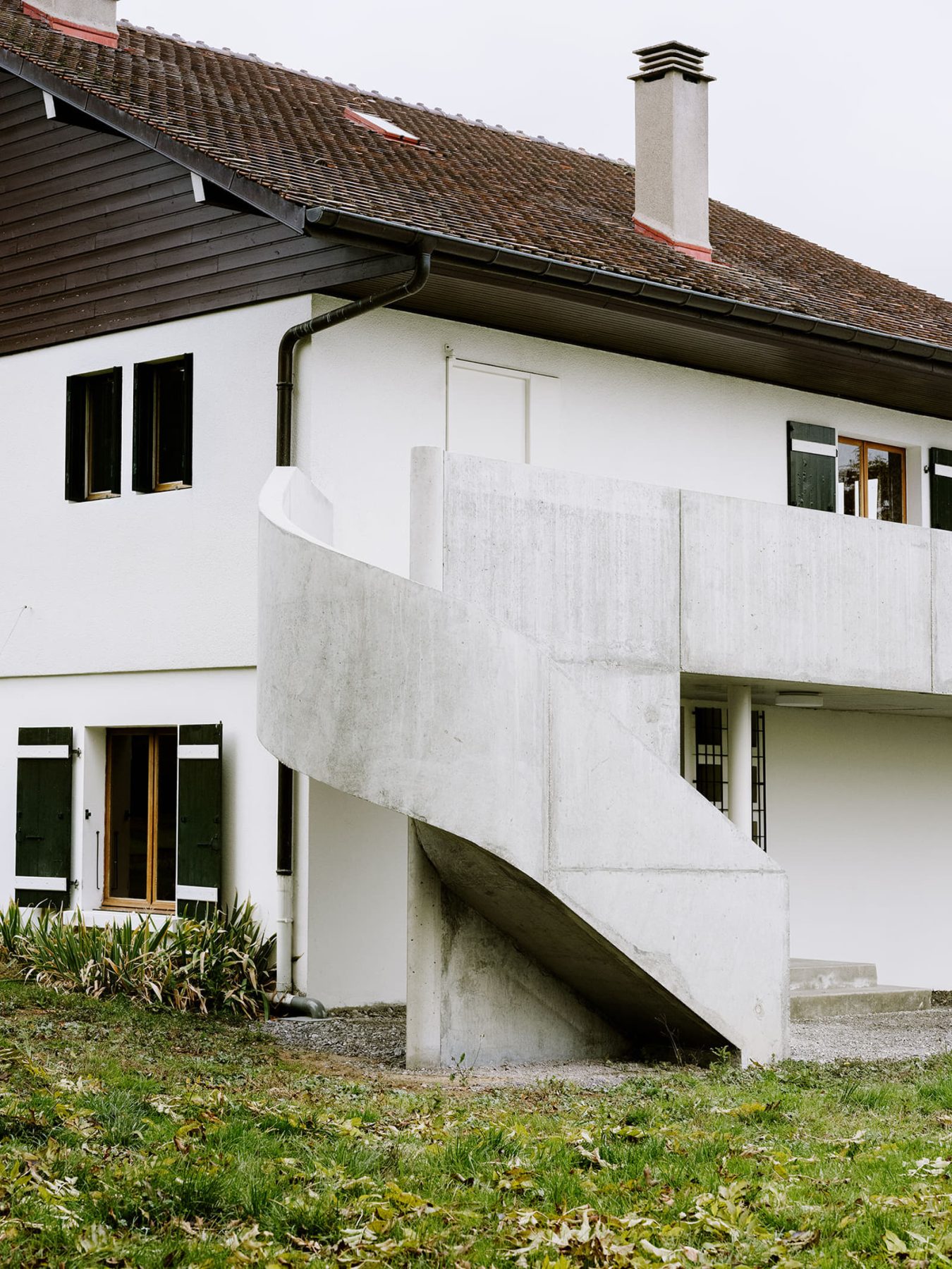Defined by raw materiality and geometric purity, the intervention focuses on the addition of a terrasse, wrapped around the existing house, ending with a sculptural staircase.
