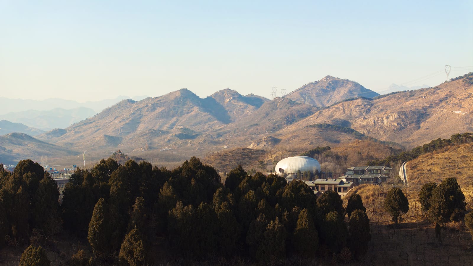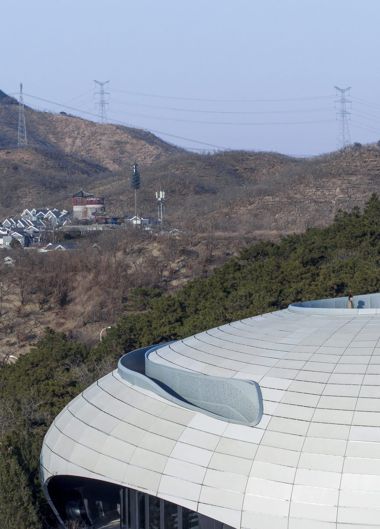 The northern edge of the site drops off like a cliff, offering the best view of the ancient Great Wall. I drew inspiration from the traditional Chinese landscape concept of the “flying rock”—there are over 30 scenic sites across China named flying rock.