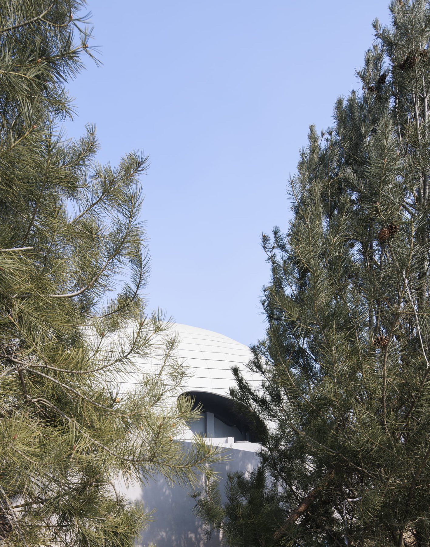 The utility rooms of The Rock span nearly 900 square meters—over half the total area. To preserve the visual proportion between building and cliff, the service space was buried into the mountain, treated as part of the landscape, keeping the main “stone” structure visually light. However, given that the site lies in Tangshan’s Grade-8 seismic zone, even a small cantilever was extremely difficult. We used parts of the curtain wall framework as structural reinforcement to ensure the final form could be realized.