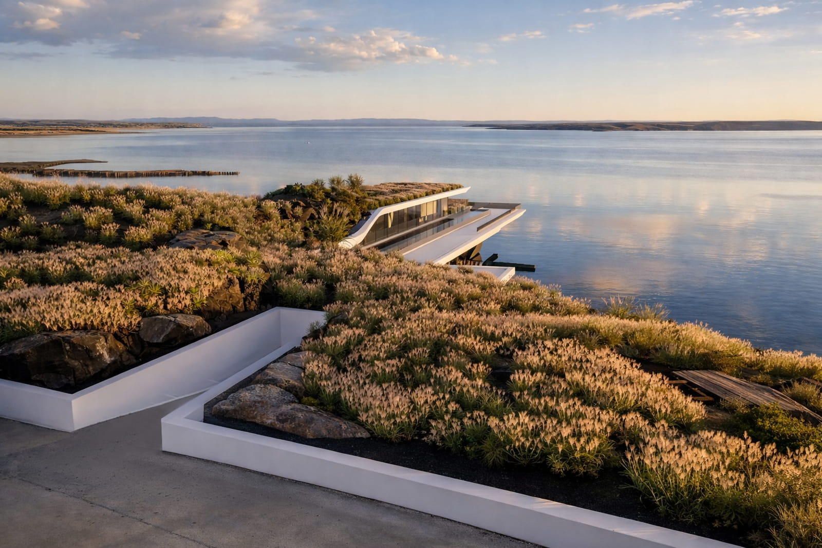 Στην προσέγγισή τους, το τοπίο δεν λειτουργεί ως σκηνικό· αποτελεί συν-σχεδιαστή. Είτε πρόκειται για παράκτιο περιβάλλον είτε για ερημικό οροπέδιο, η μορφολογία, η χρωματική παλέτα και το μικροκλίμα διαμορφώνουν ενεργά την αρχιτεκτονική γλώσσα. Οι επιφάνειες συχνά ενσωματώνονται στο έδαφος, τα δώματα φυτεύονται και τα ανοίγματα τοποθετούνται στρατηγικά, καδράροντας επιλεγμένες οπτικές φυγές. Η αρχιτεκτονική λειτουργεί ως όριο: μεταξύ γης και ουρανού, στερεού και ρευστού, εσωτερικού και εξωτερικού.
