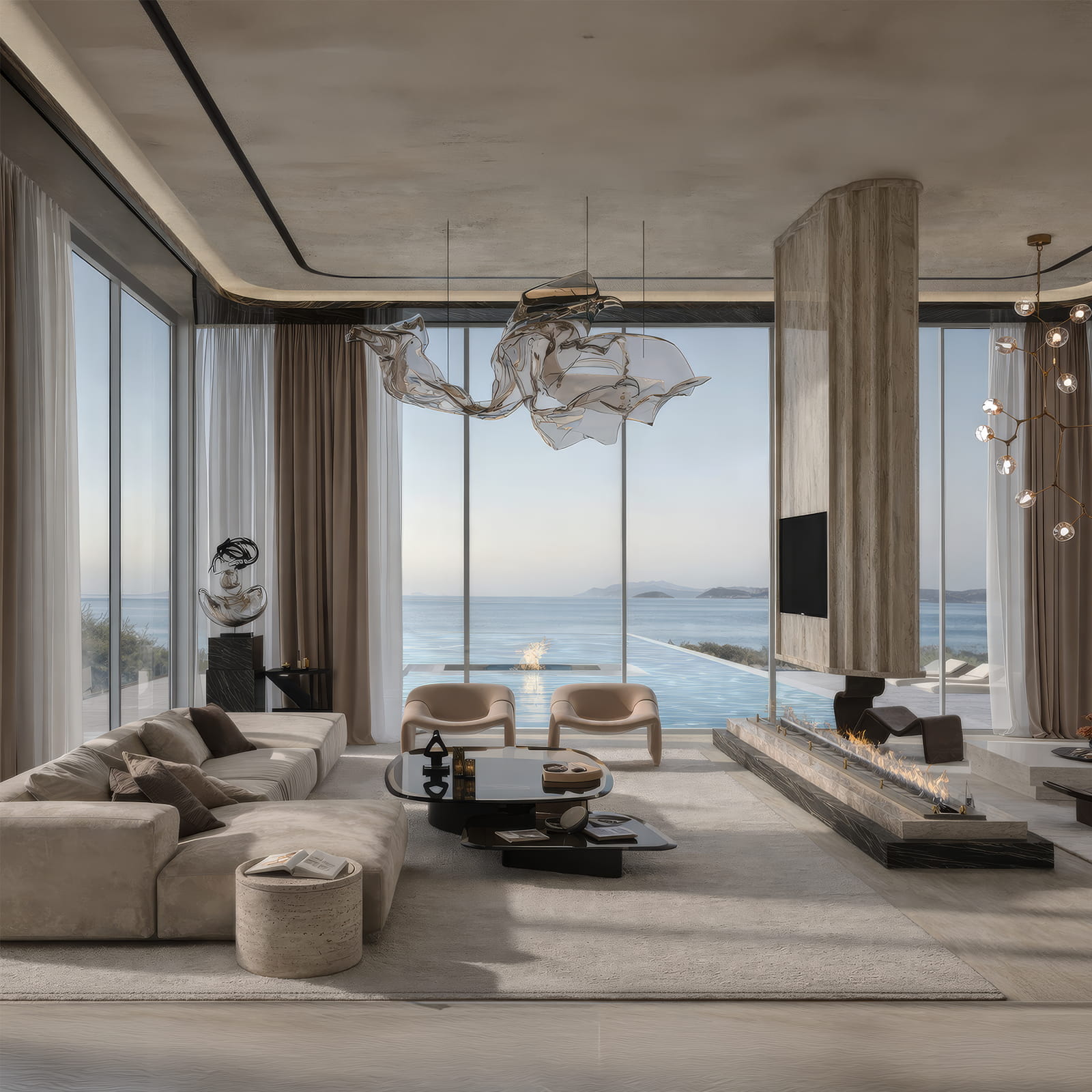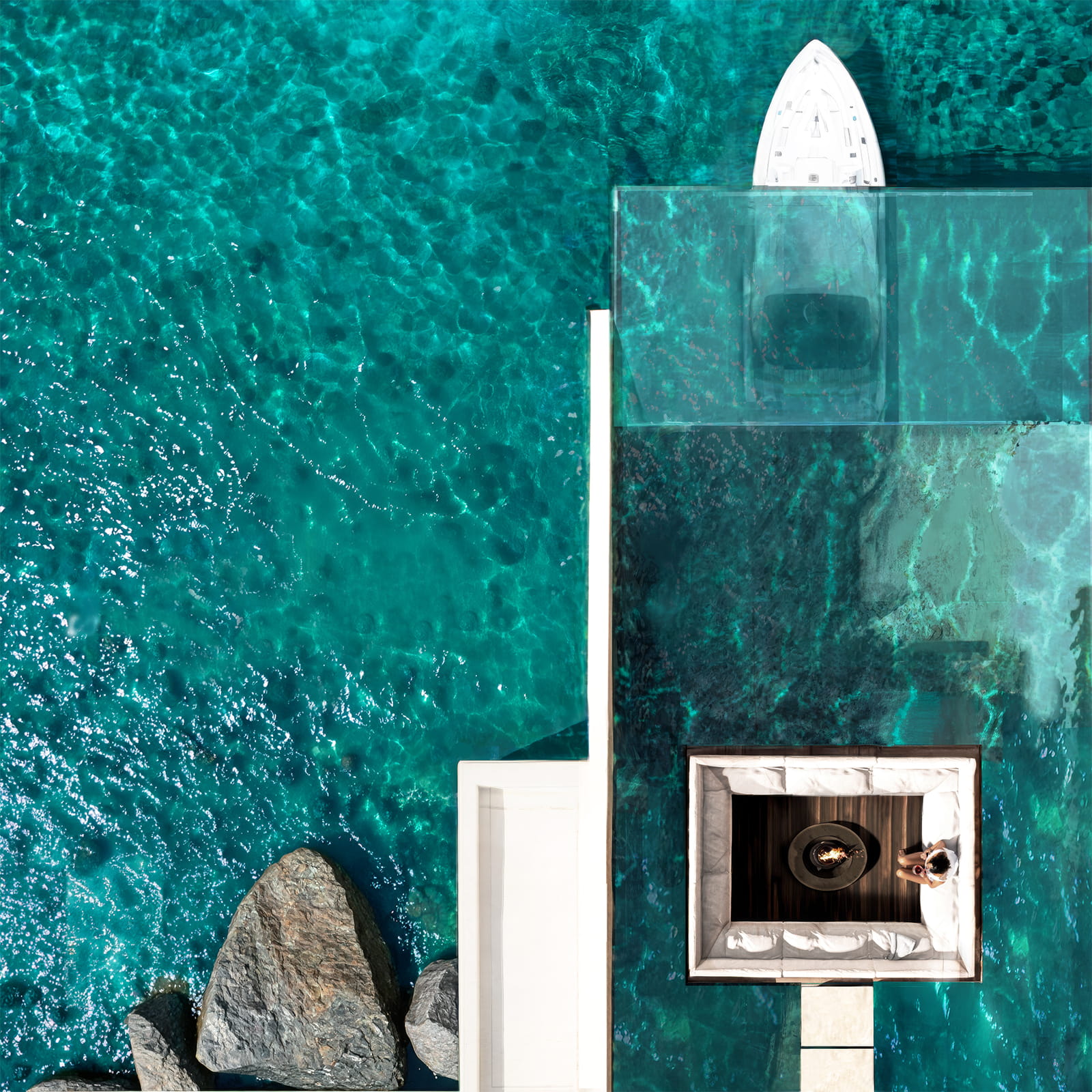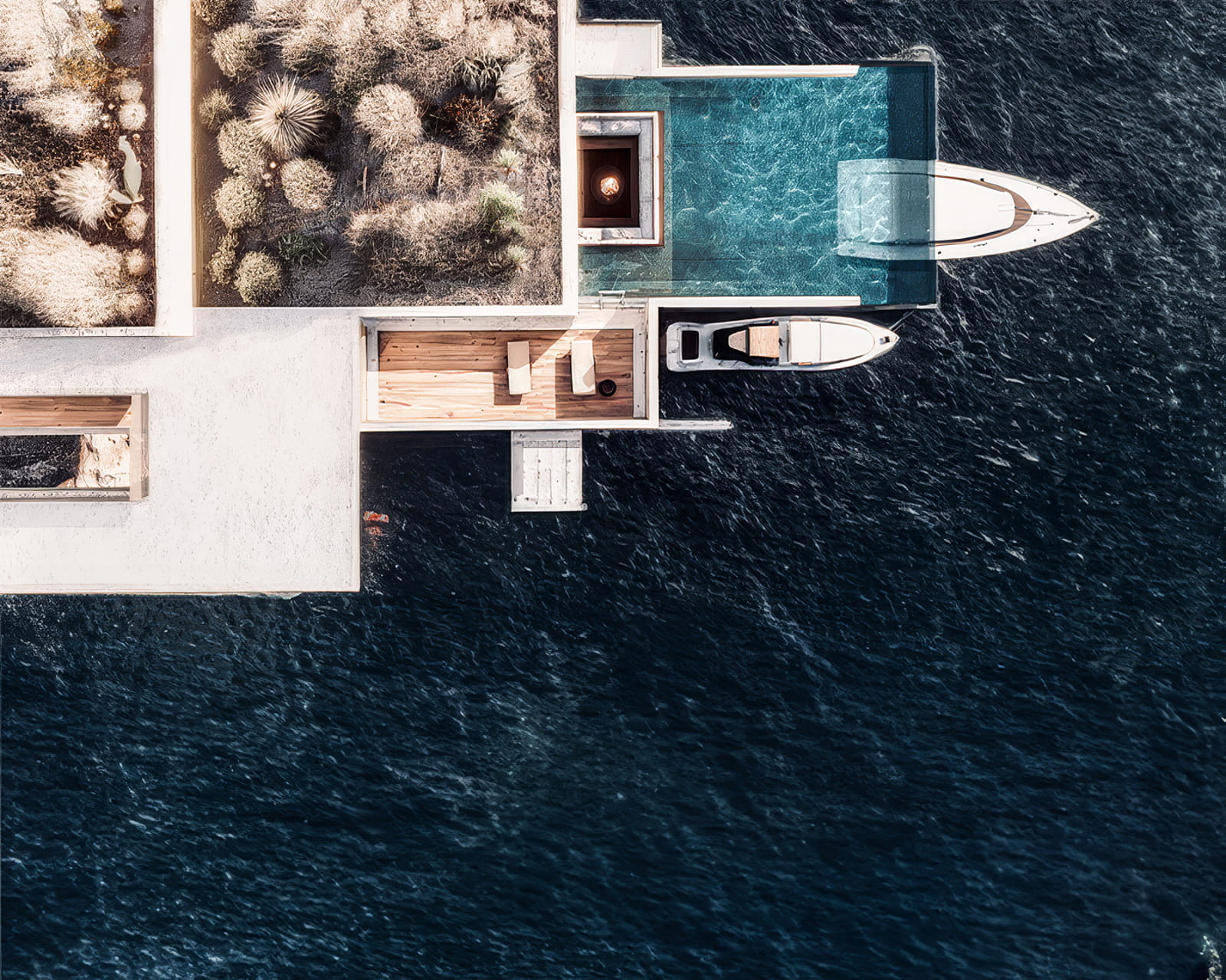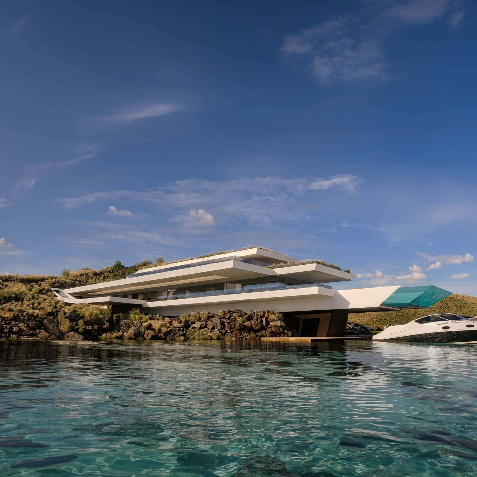 Στον πυρήνα της, η Villa Earth αρθρώνεται γύρω από ένα ισχυρό αρχιτεκτονικό δίπολο: την απόλυτη ενσωμάτωση στο τοπίο και, ταυτόχρονα, τη δυναμική αντίστιξη με αυτό. Η ένταση αυτή παράγει μια πολυεπίπεδη, πολυαισθητηριακή εμπειρία, η οποία ενισχύεται από την άμεση πρόσβαση στο ιδιωτικό λιμάνι και τα γαλάζια νερά που την περιβάλλουν.
