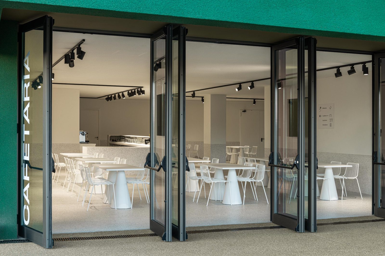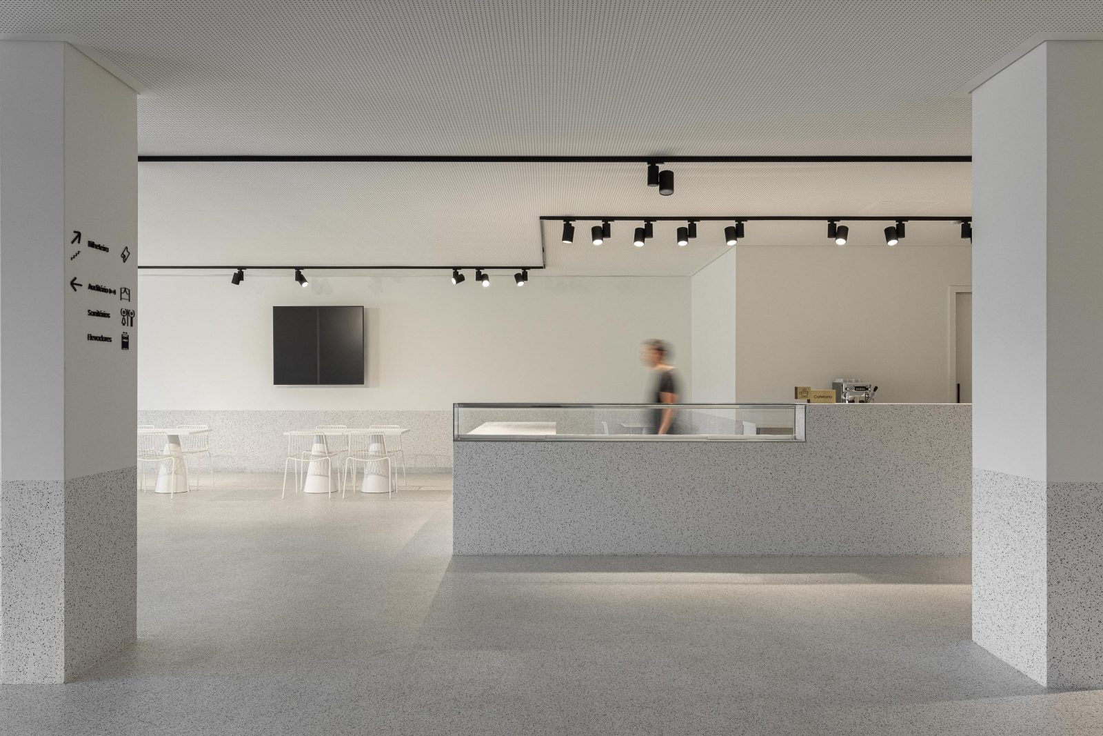 The building unfolds across four levels. Level -2 is technical, where loading and unloading occur without interfering with other circulation paths. An independent system allows deliveries to all four levels via freight elevators.