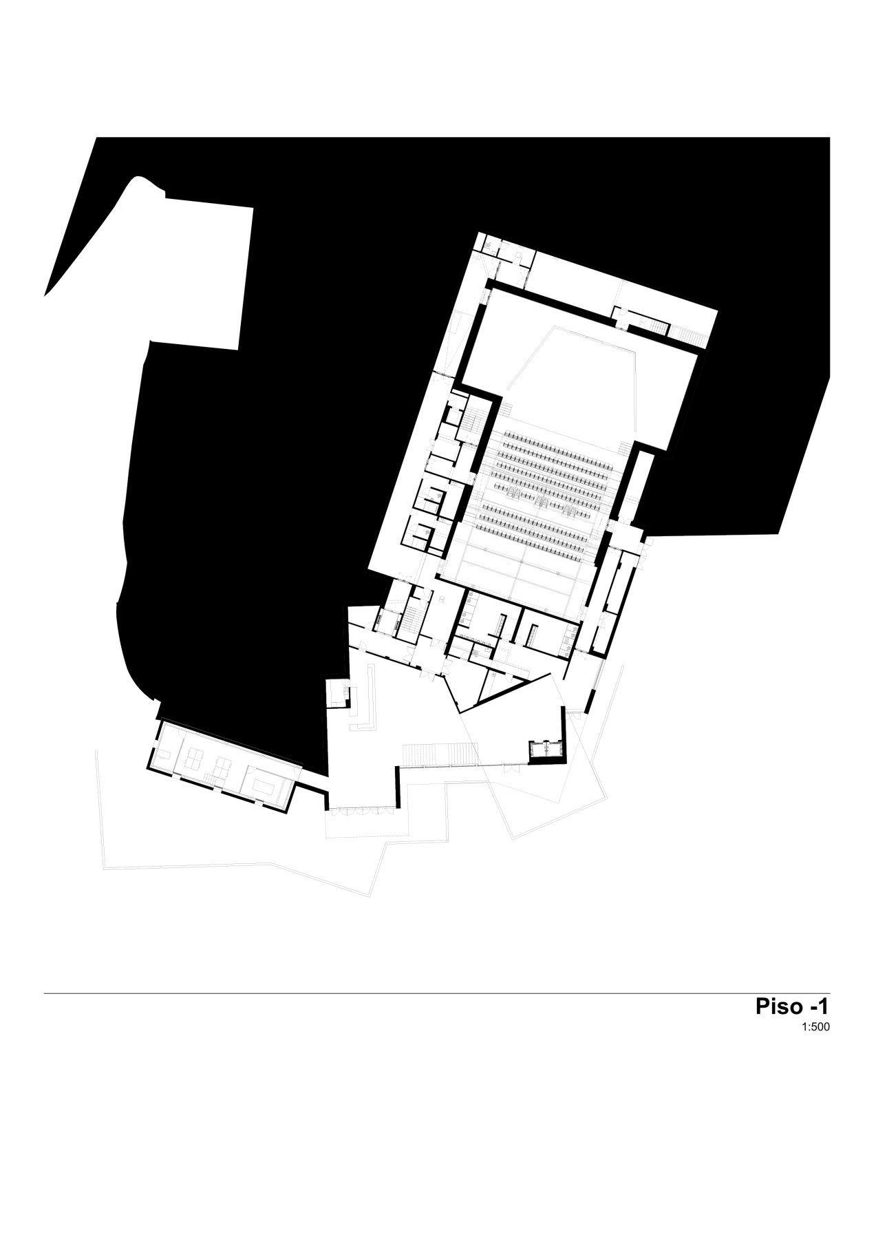 On level -1, visitors can experience the exhibition space, access the café and the first tier of the auditorium, and enjoy a direct connection to the garden, the outdoor auditorium, and the pathway leading to the Cavalum. Level 1 is purely technical, with direct access to the catwalk of the main stage.