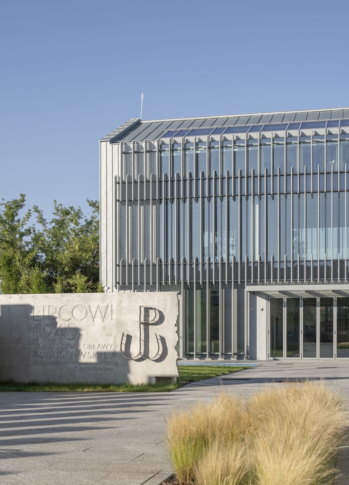 An integral part of the House of Remembrance of the Augustów Roundup is the Augustów Roundup Victims Memorial Wall. This installation, inscribed with the names of nearly 600 people murdered in 1945, serves as a symbolic tribute to the victims. For the authors of the design, it was important to connect the project to the specific place of its location, which is why they dedicated a significant amount of space to greenery, which is meant to grow between sculpturally crafted steel trees. This place is open to individual acts of remembrance, enabling families to place, for example, a flower or ribbon next to the name of a loved one.
