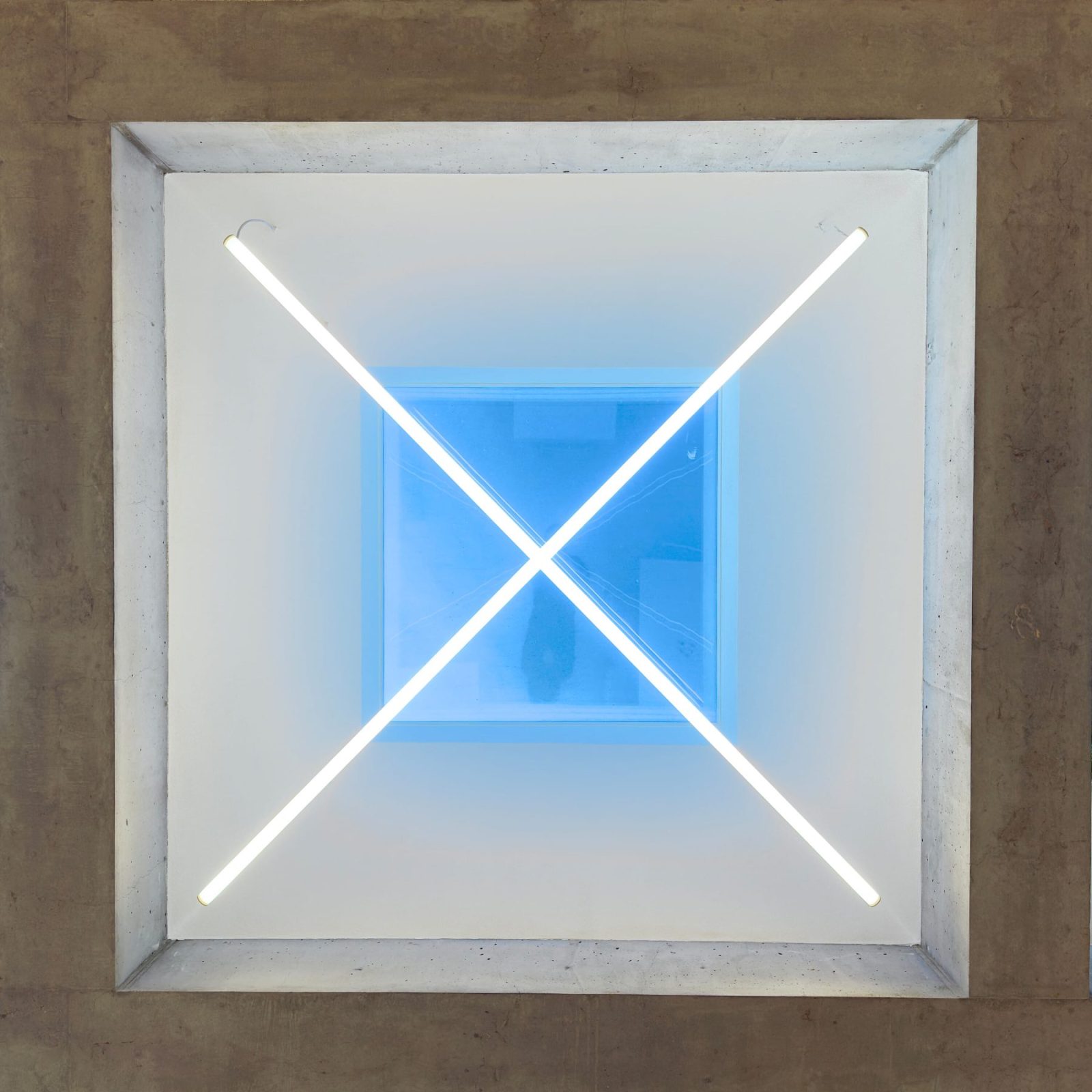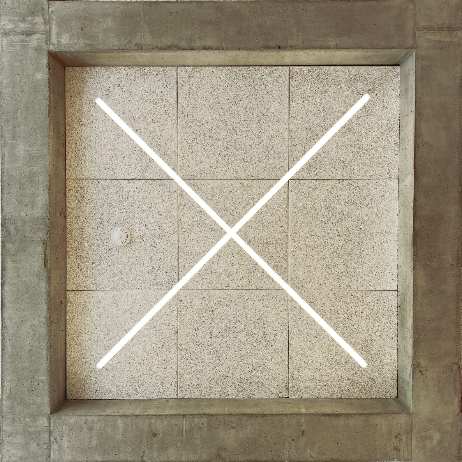 The compact volume is carved by two southern courtyards (atria), shaped by the natural slope of the land—“inlets” where the garden enters the building and the building opens into the garden.