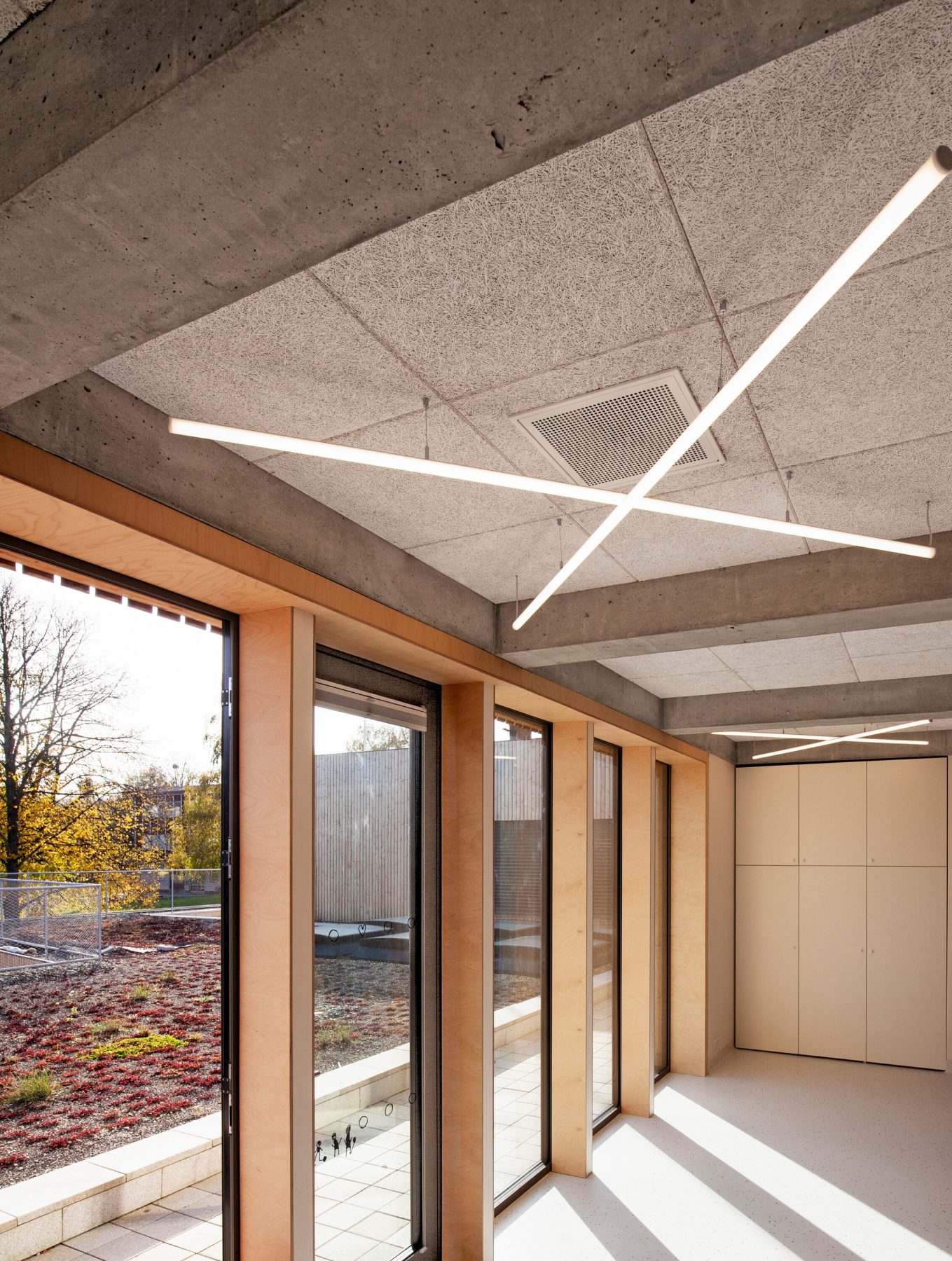 During construction, a collaborative graphic design workshop with the children resulted in a custom “kindergarten font,” which now serves as the building’s signage and wayfinding system. The initiative aimed to actively involve the children in the creation of their future environment, deepening their sense of belonging and engagement.