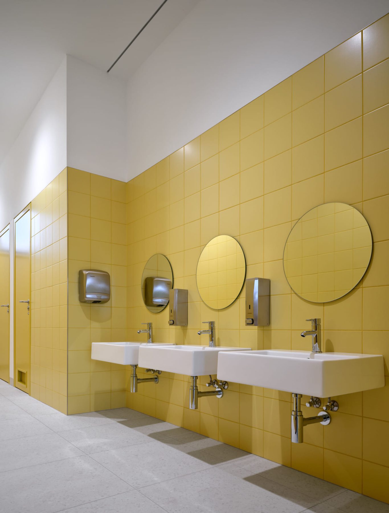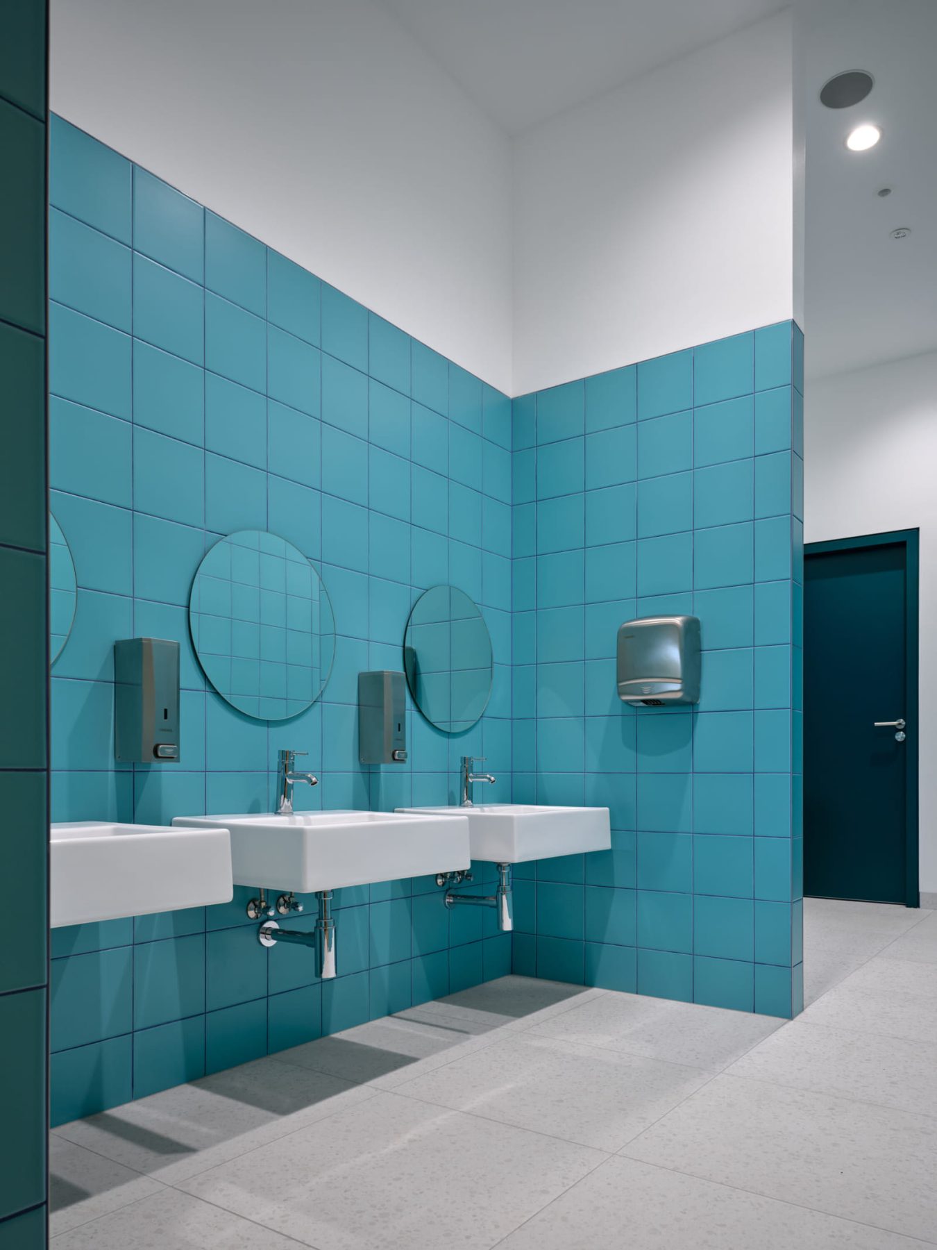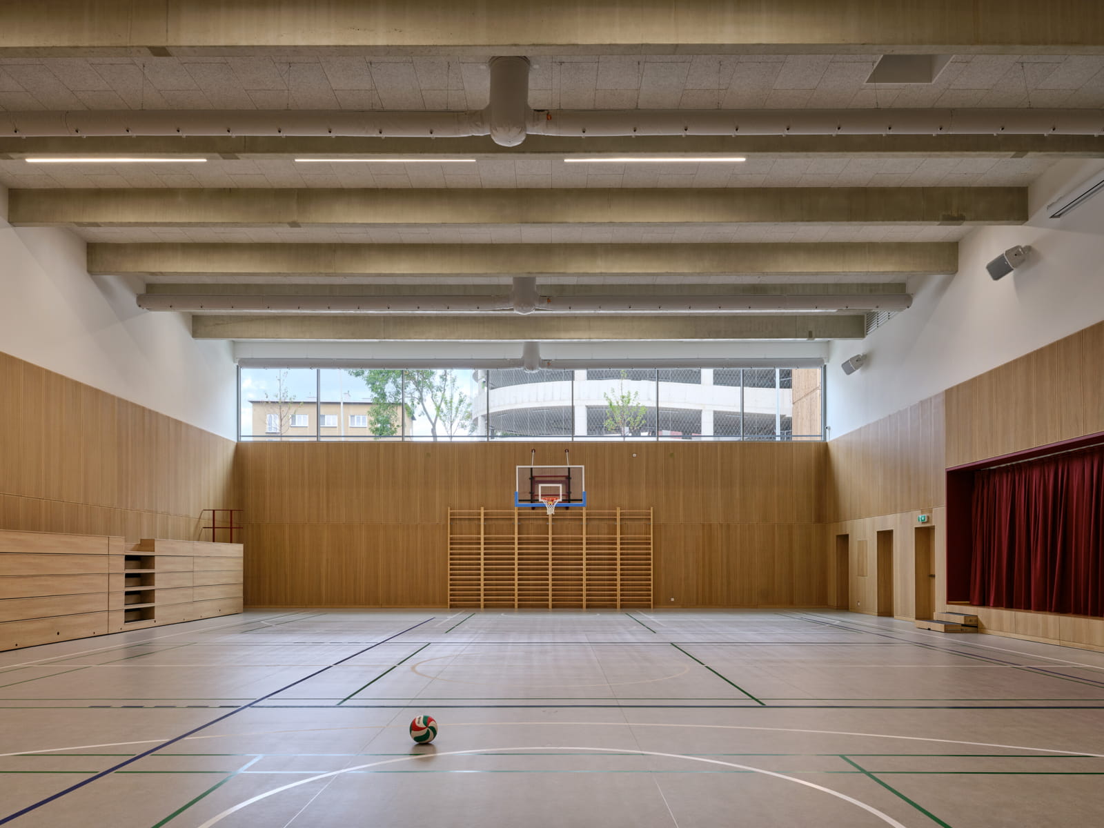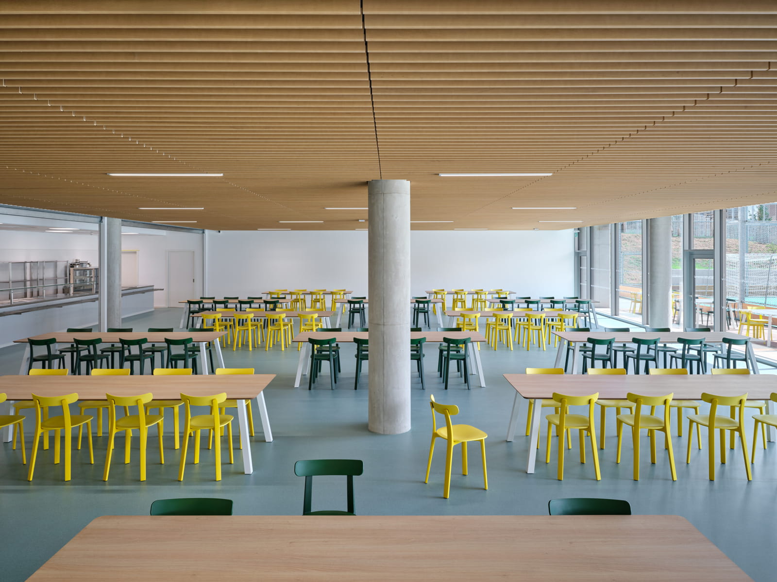The entrance to the elementary school leads into the main hall, which features a central staircase, an administrative block, and changing rooms. Along the corridors running both north and south are the classrooms for the lower grades, as well as shared spaces for alternative learning, relaxation, and play.