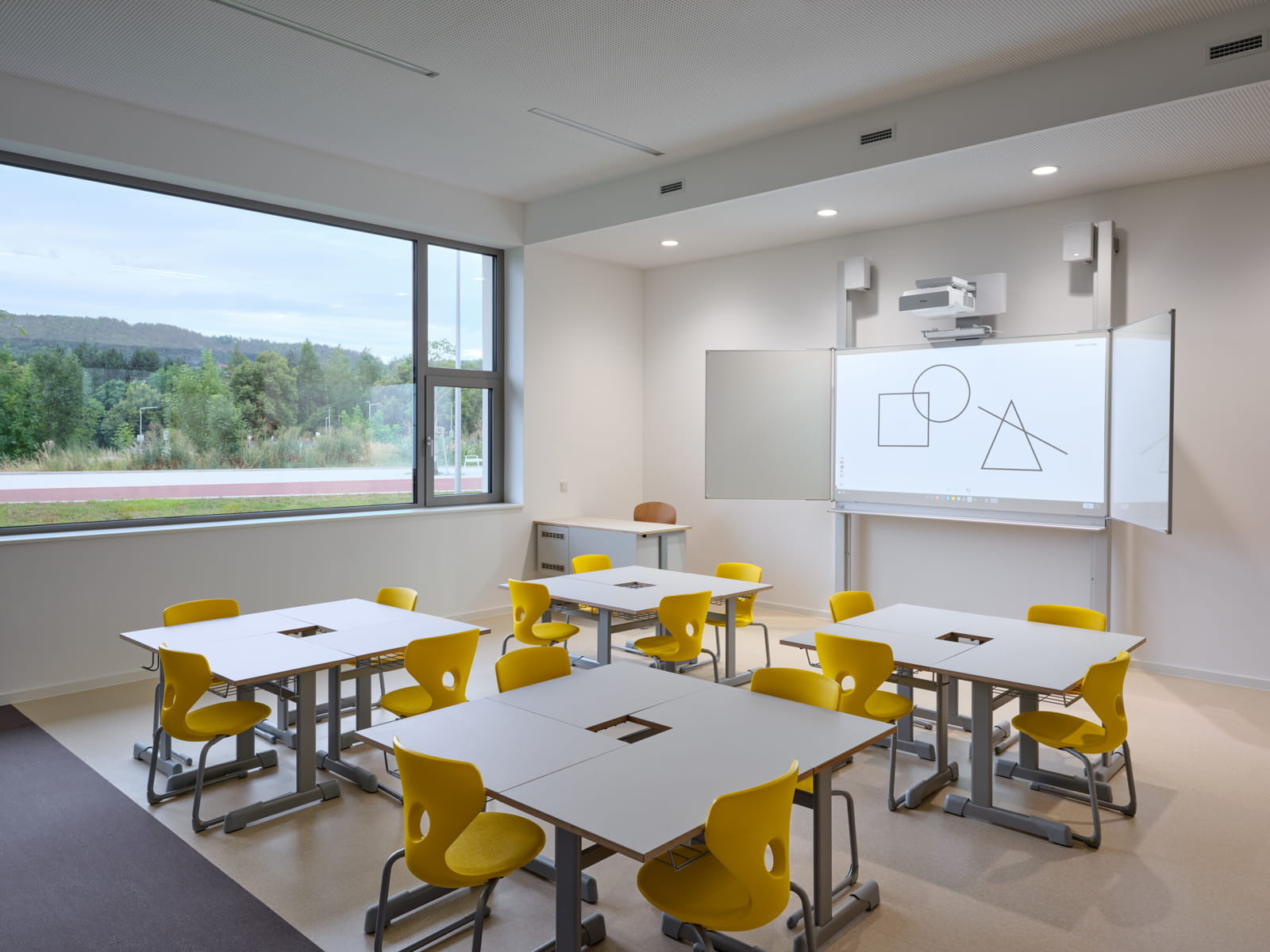 The elementary school classrooms and laboratories are flexible, spacious rooms with various seating layouts and modern equipment.