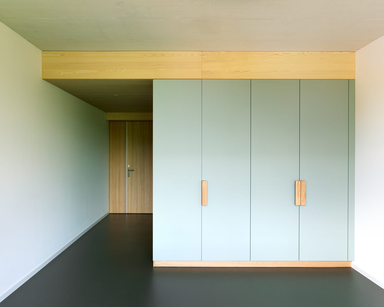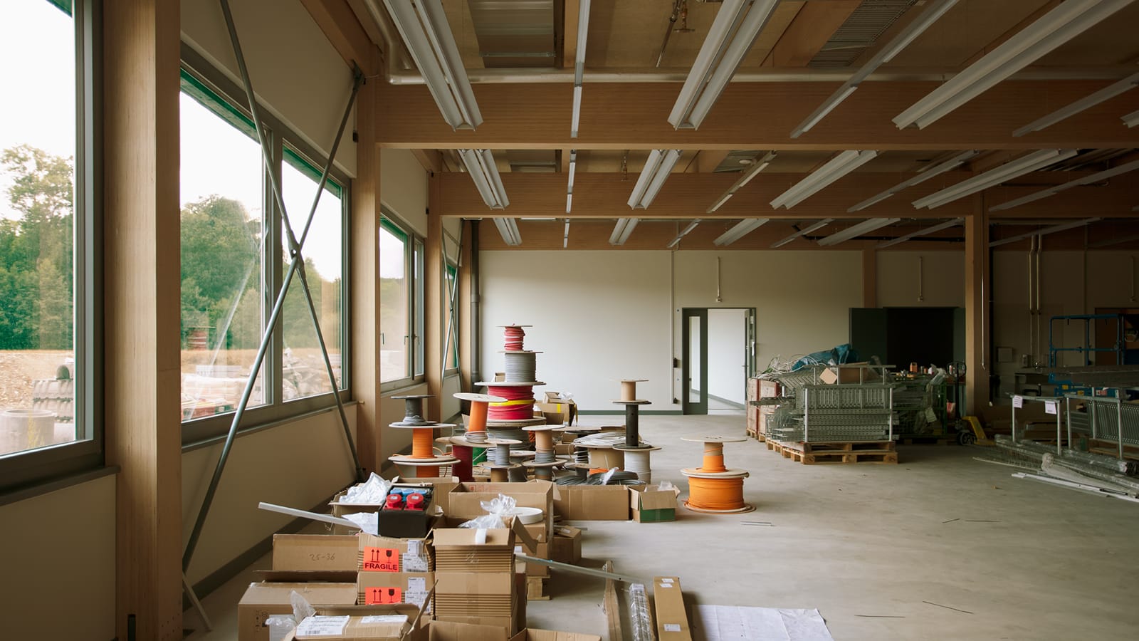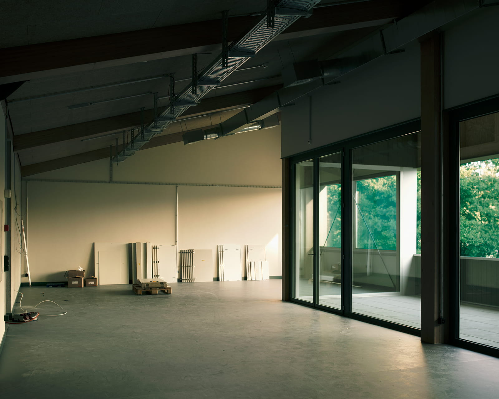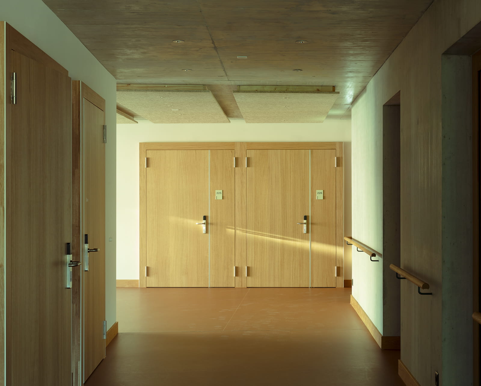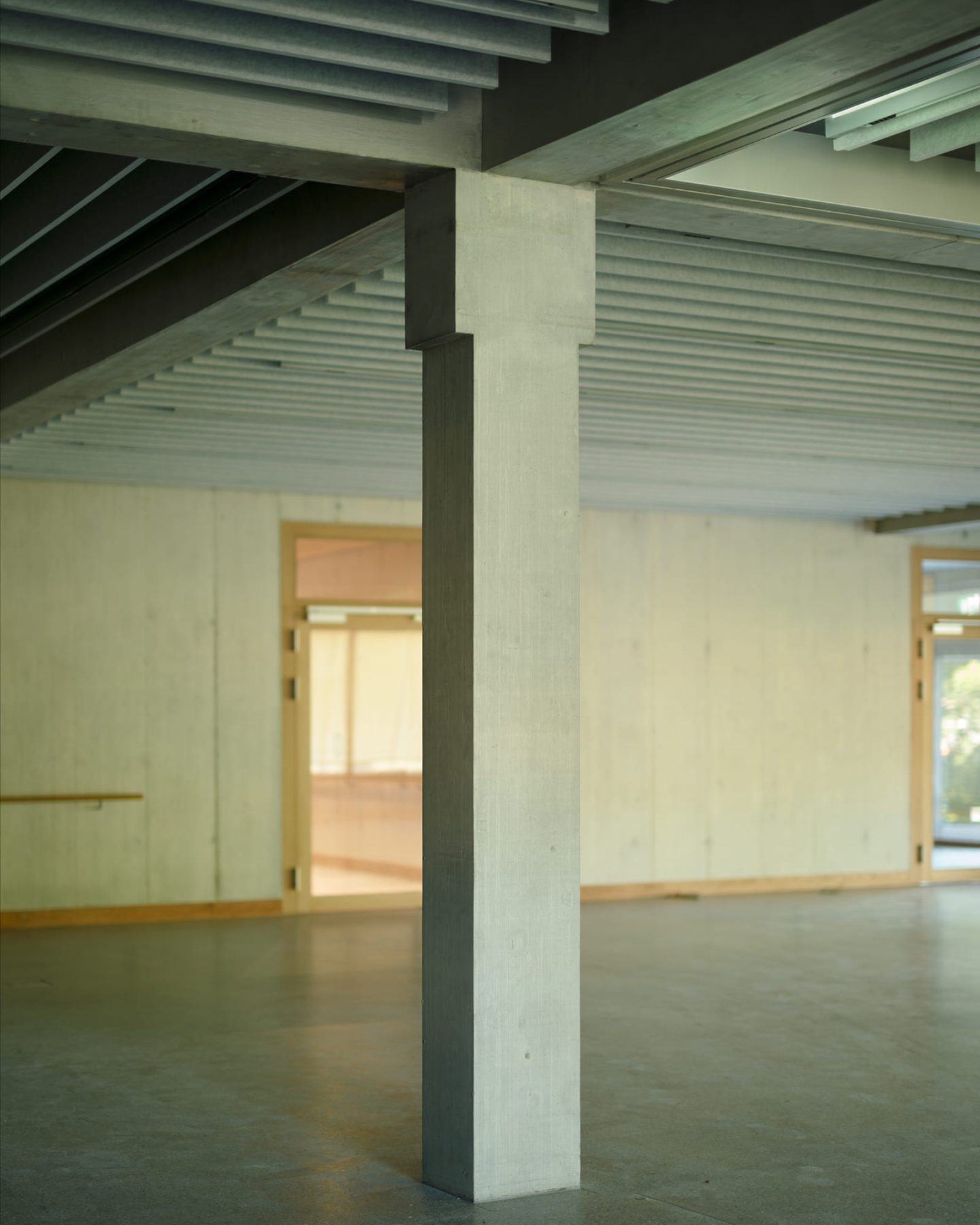 Inside, the structural framework of beech wood defines the space. In combination with the openly routed technical installations, it creates a direct and robust expression.