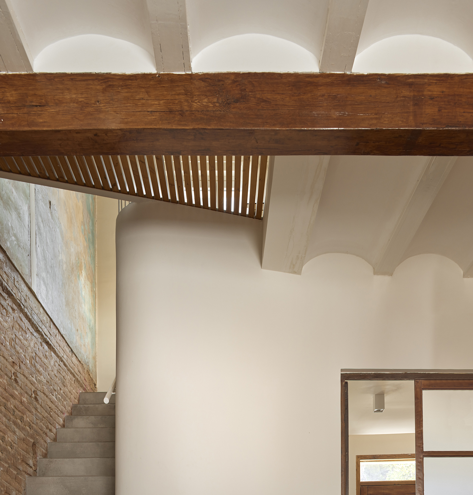 The intervention preserves and reinterprets the building’s existing fabric. Exposed brick walls, traces of former paint layers, and restored timber elements are not concealed but amplified, becoming central spatial and atmospheric devices. Structural reinforcements are deliberately expressed, enriching the ceilings while revealing the tectonic logic of the intervention. Programmatically, the house unfolds as a hybrid domestic environment tailored to a specific way of inhabiting.