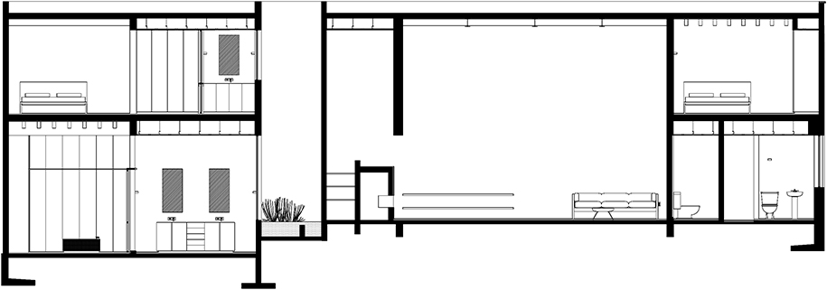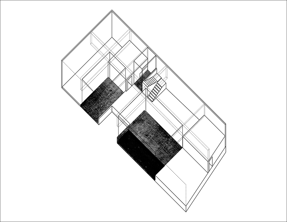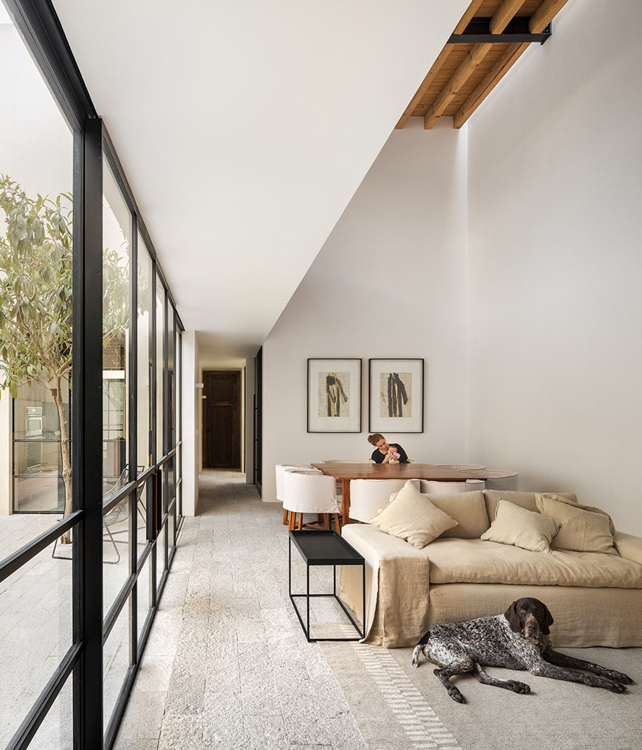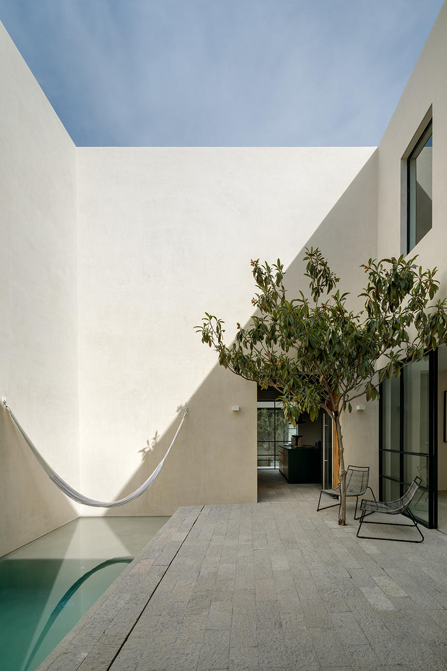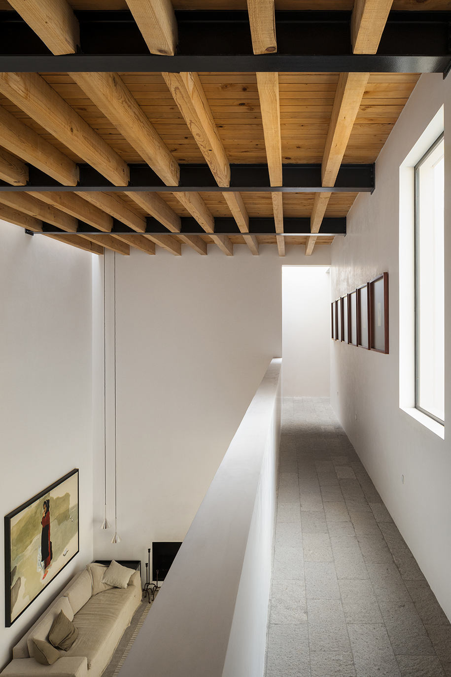 Having a scheme that works inwards all the restrictions and having no nearby views to the landscape, 3 void spaces were proposed in the plan in the form of patios, each one with different character, use and program. These voids give the project its character, producing different perception of scale to the user, a high contrast of light and shadows, spaces of silence and rest.