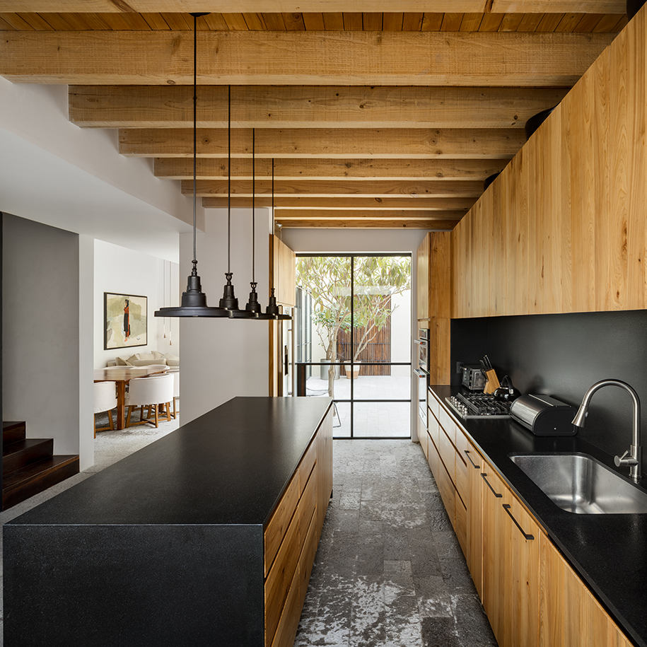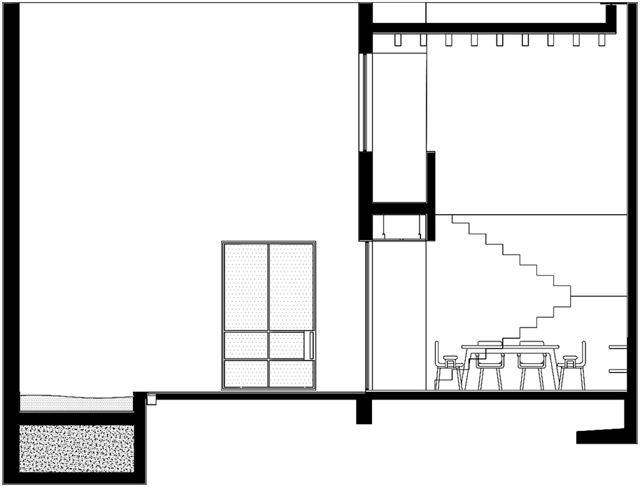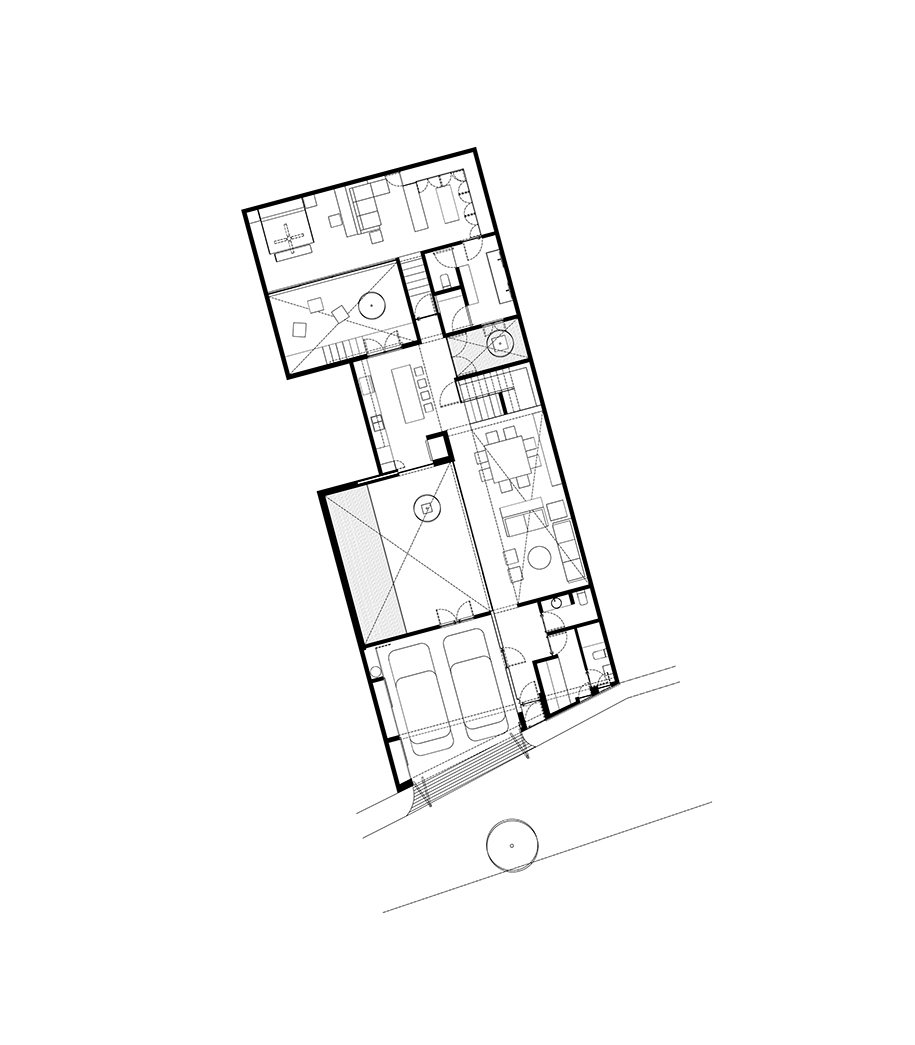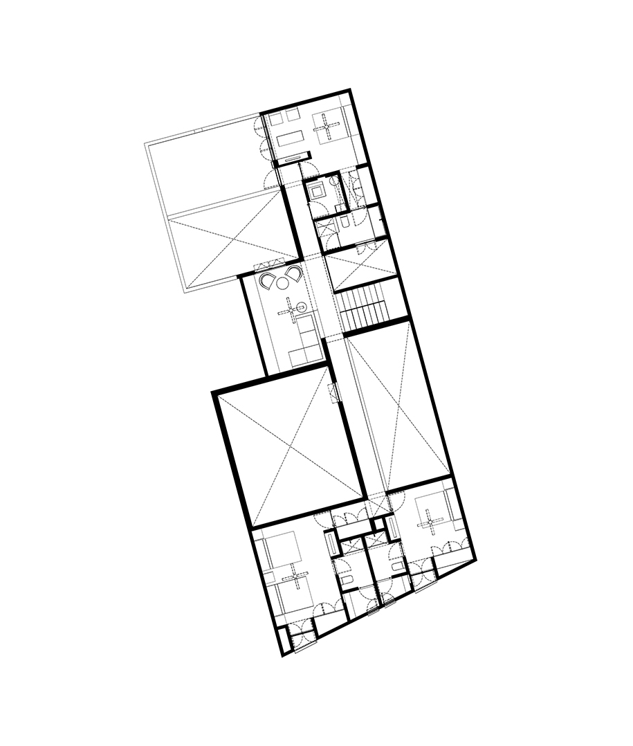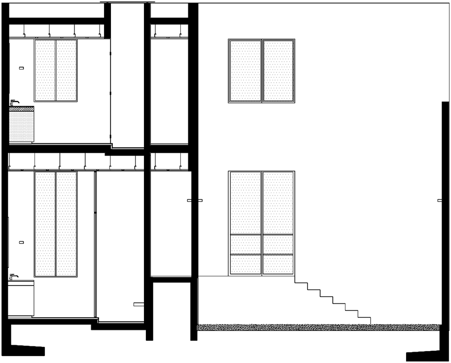 Having a scheme that works inwards all the restrictions and having no nearby views to the landscape, 3 void spaces were proposed in the plan in the form of patios, each one with different character, use and program. These voids give the project its character, producing different perception of scale to the user, a high contrast of light and shadows, spaces of silence and rest.