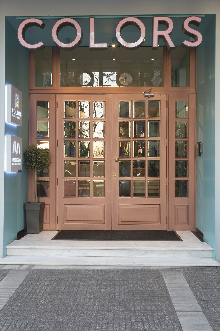 Colors Urban Hotel design had two challenges: working with a listed building which was designed by Hasid Fernandez and Jacques Pleyber in 1925, and the design of a contemporary hotel, up to the standards of the modern traveler. The building has views both on Tsimiski and Agiou Mina streets. It has a three-parts facade with wide openings and pilasters, big interior height and a large central atrium.