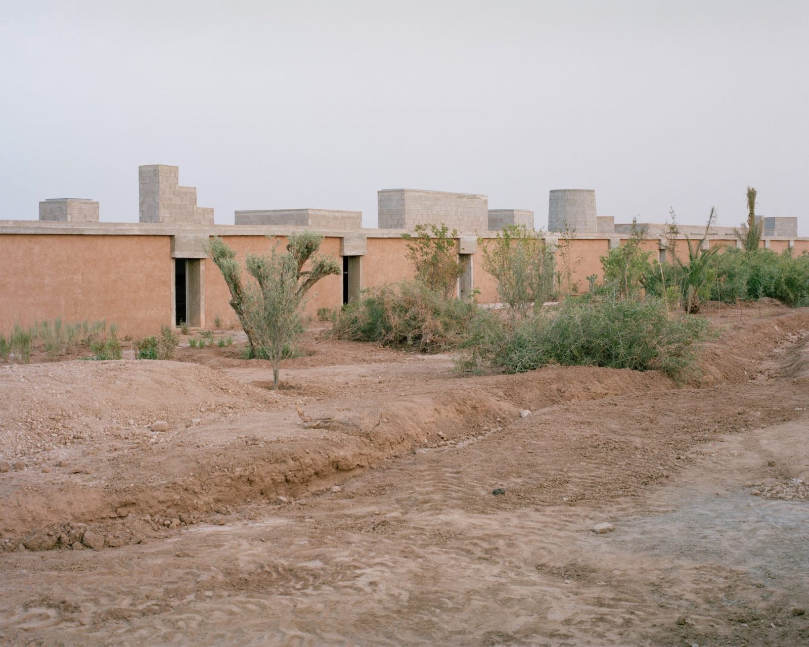 Two vital infrastructures cross this desertic plot in the plain of Haouz. The first one, a mesref, is a small water channel filled a few times per year for agricultural purposes thanks to a complex network of canals flowing from the high Atlas.