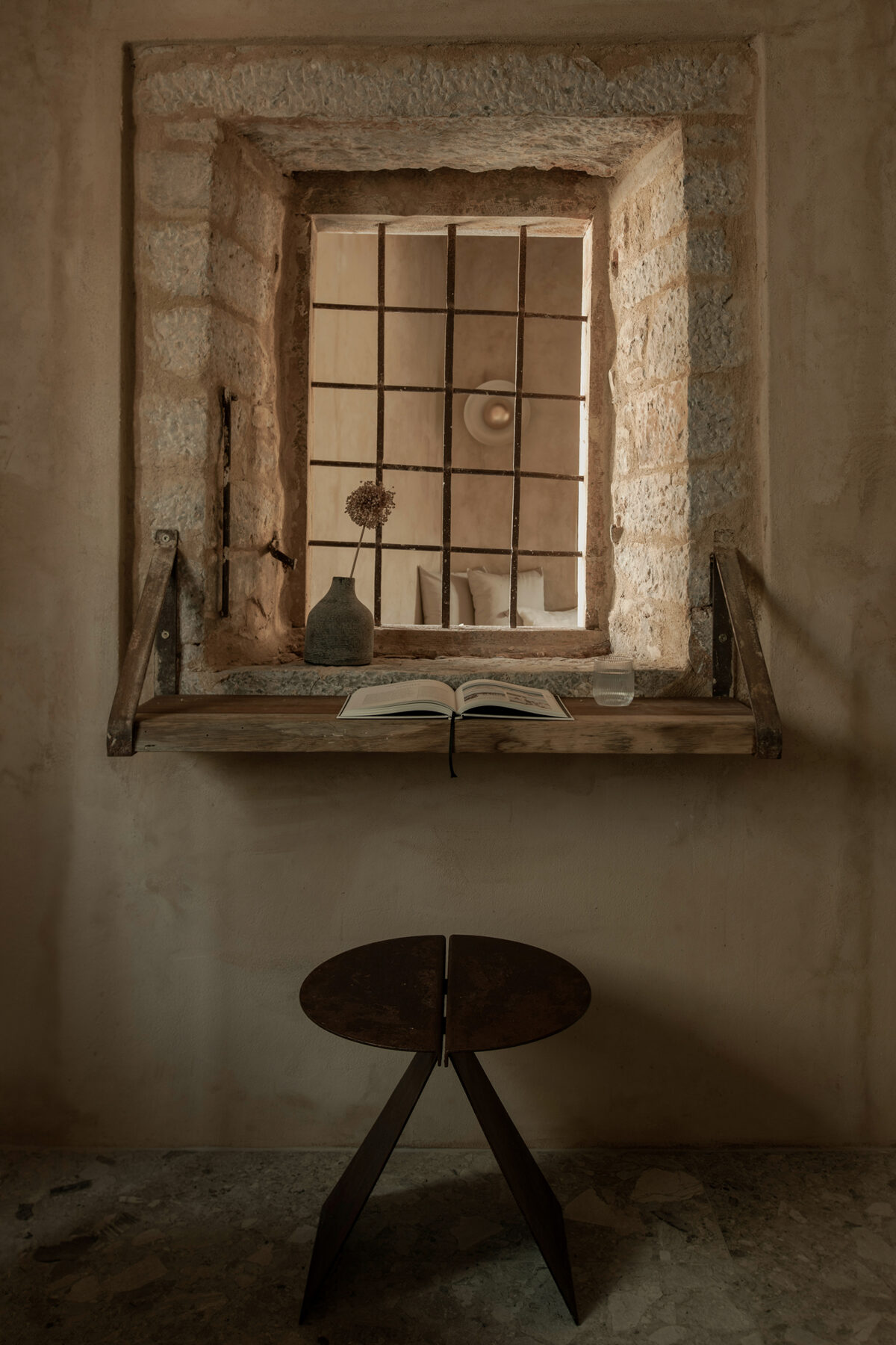 In the interior space, the Venetian arch dominates, being preserved entirely intact with the wear and patina of time imprinted on it and stands in a central position, around which the two-room residence is developed and organized.