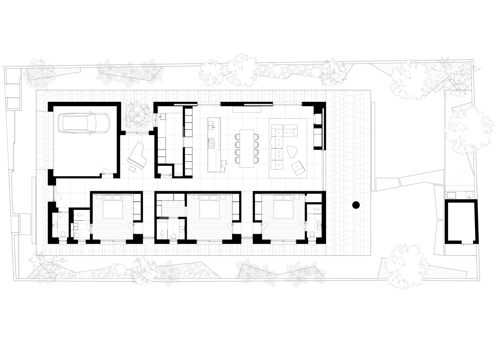 Ο κήπος έχει φυτευτεί αποκλειστικά με μεσογειακή βλάστηση, προκειμένου να δημιουργηθεί ένας χώρος που απαιτεί ελάχιστη συντήρηση. Η φύτευση εμπλουτίζει την οπτική προοπτική ενισχύοντας τη σύνδεση των εσωτερικών χώρων με το περιβάλλον.