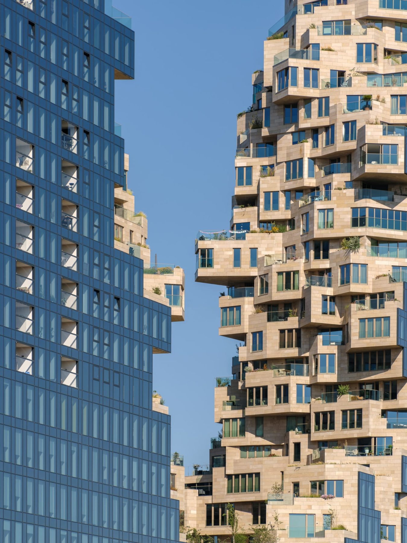 The mixed-use project incorporates a hotel, offices, and hospitality spaces, filling a gap in amenities previously missing in the neighbourhood. Its stacked configuration not only reduces visual bulk but also creates numerous outdoor terraces, with each block offering roof space on the block below.