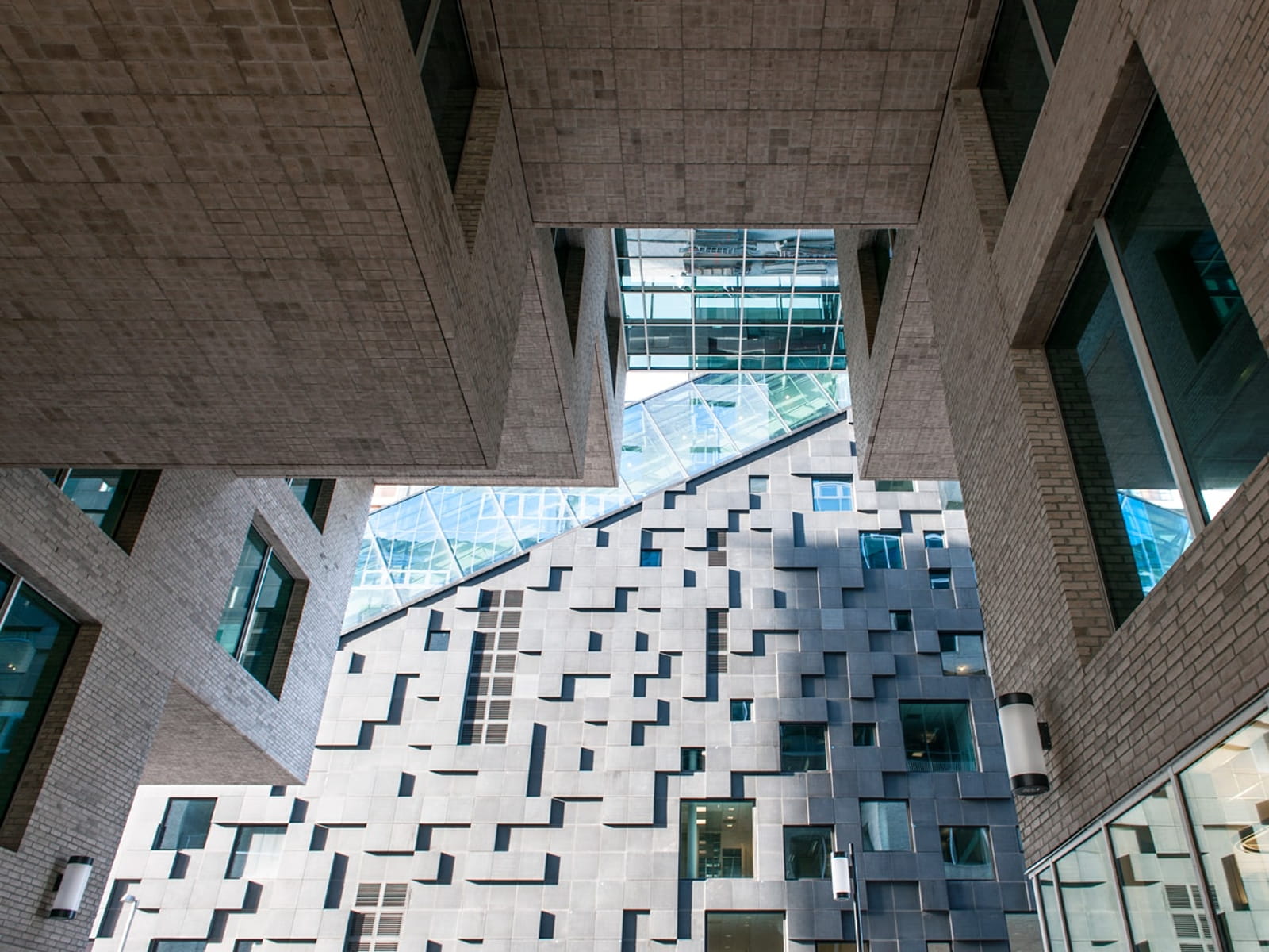 Externally, Valley appears as a refined glass shell that reflects the business district context. Internally, this shell opens to an expressive, geological character of natural stone and greenery, creating a “valley” that winds between the towers on the fourth and fifth floors — a publicly accessible landscaped space linked to the street by a footpath.