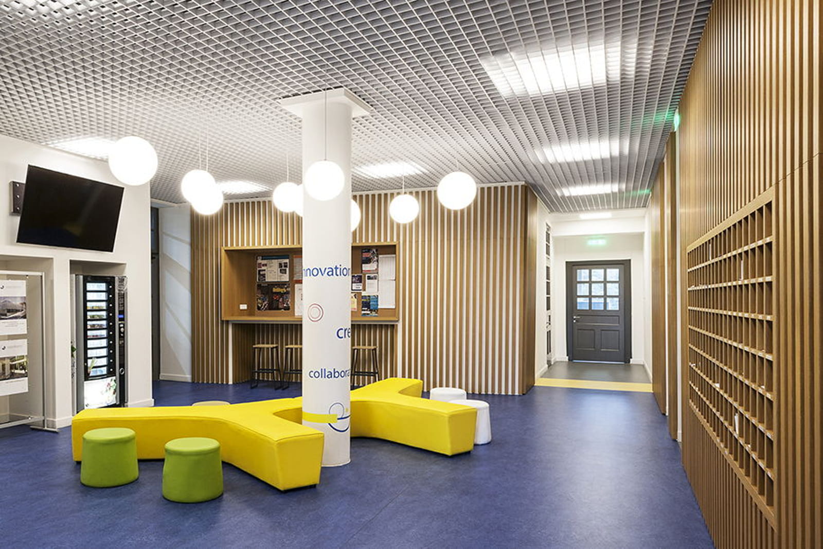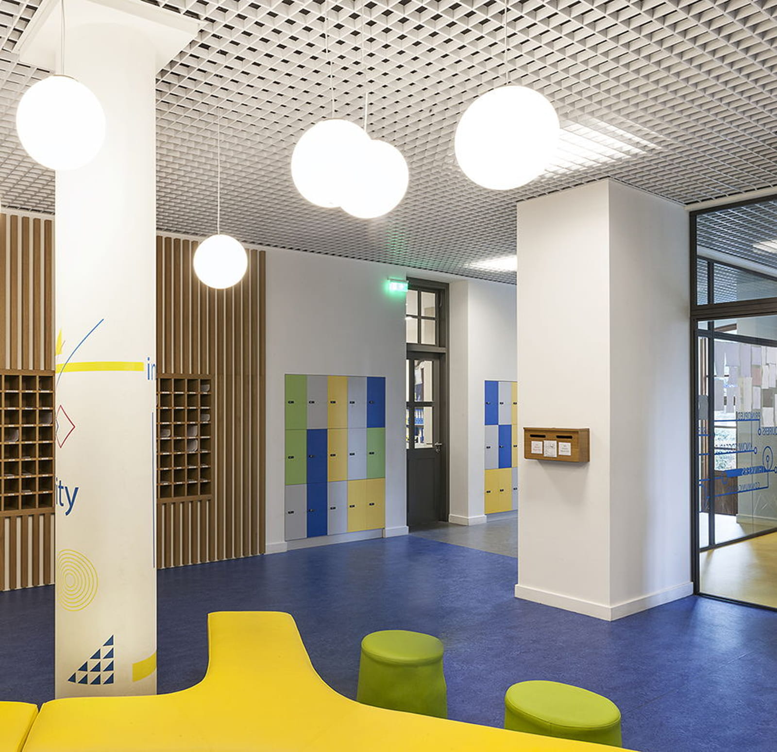 Κεντρικό ρόλο στη σύνθεση κατέχει η ισορροπημένη χρήση υλικών και χρωμάτων. Ζωντανές χρωματικές πινελιές συνδυάζονται με φυσικά υλικά, δημιουργώντας ζεστούς και φιλόξενους χώρους, ενώ η ένταξη φυτεύσεων ενισχύει την παρουσία του φυσικού στοιχείου στο εσωτερικό. Ο διάλογος μεταξύ σύγχρονων και διαχρονικών στοιχείων αποτυπώνεται και στις υλικές αντιθέσεις, όπως οι οροφές αλουμινίου σε συνδυασμό με ξύλινες επενδύσεις.