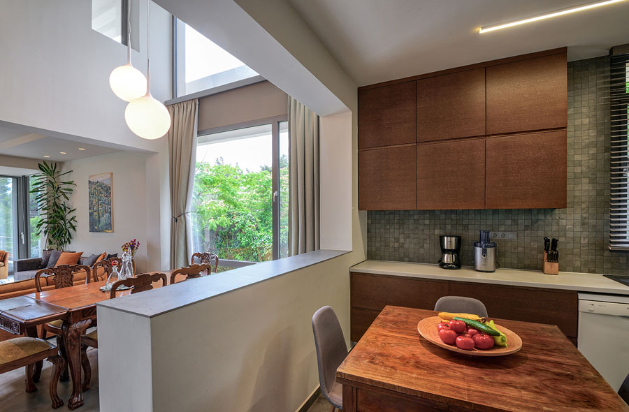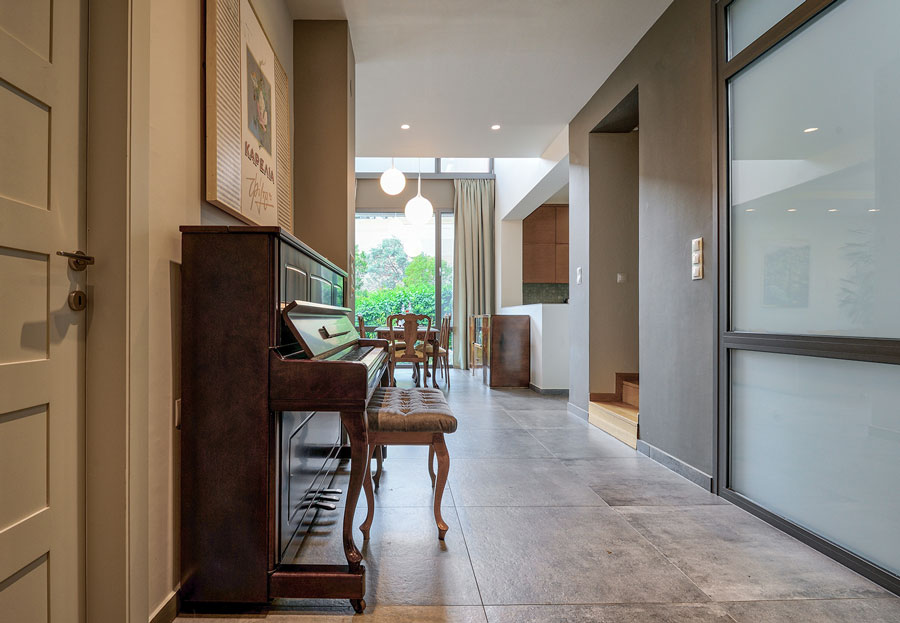 The architectural choices made for this house reflect the general principles with which T&T Architects deal with private residence issues, like designing spaces with multiple sightlines and orientations, in order to achieve natural cross- ventilation, natural light and protection from the sun and designing several outdoor or semi-sheltered areas which, in combination with the transparency of the openings, create an open and outward-looking living space.