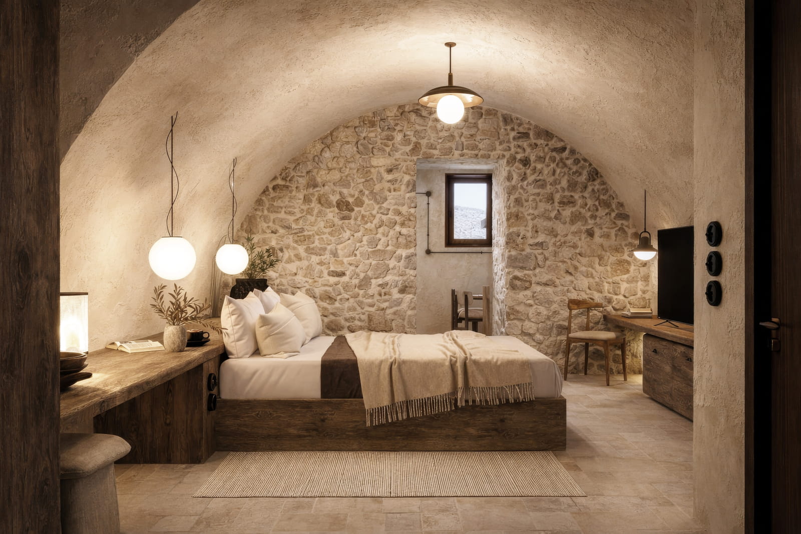 Γι’ αυτό οι επιλογές υλικών γίνονται σχεδόν ερευνητικές. Δοκιμάζονται στον ήλιο, στην υγρασία, σε όλες τις εποχές. Η αρχιτεκτονική, σε αυτή τη λογική, δεν είναι φωτογενές φόντο ούτε σκηνικό για παροδική τουριστική κατανάλωση. Ζητά φροντίδα εκεί όπου υπάρχει κάτι άξιο διατήρησης και ειλικρίνεια όπου κάτι χτίζεται εκ νέου.