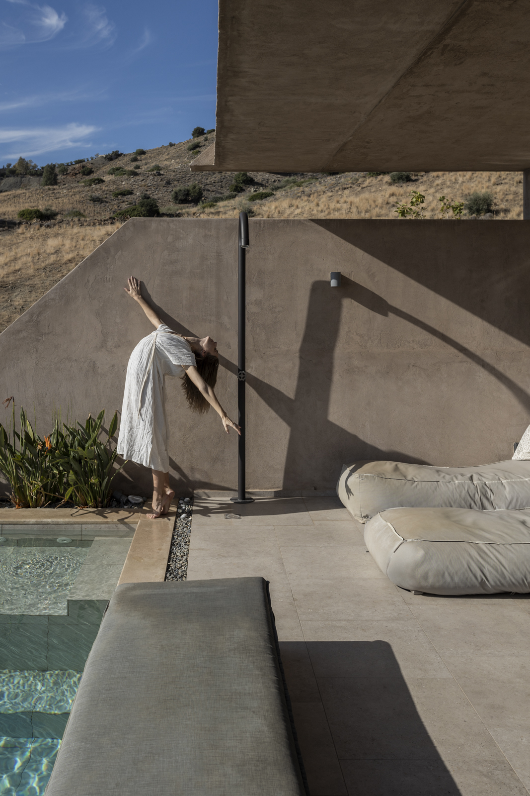 Η αρχιτεκτονική εδώ οπισθοχωρεί, επιτρέποντας στο τοπίο να παραμείνει πρωταγωνιστής. Μέσα από τη γεωμετρική πειθαρχία και την υλική λιτότητα, η σύνθεση επαναφέρει την κατοίκηση στην πρωταρχική της διάσταση — ως πράξη ένταξης στον τόπο. Μια σιωπηλή αρχιτεκτονική, όπου το κτίριο δεν ξεχωρίζει από τη γη, αλλά συνεχίζει τη γραφή της.