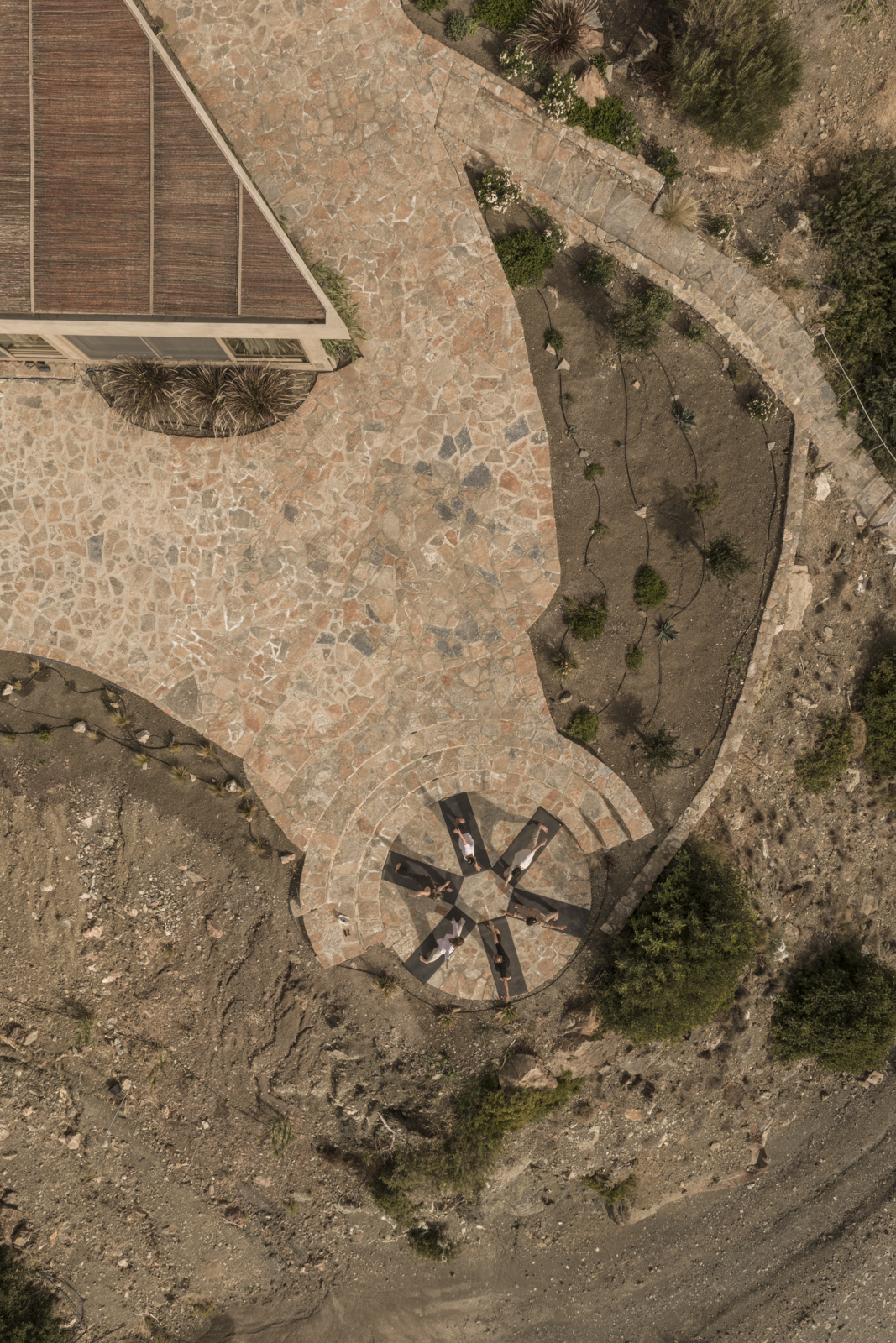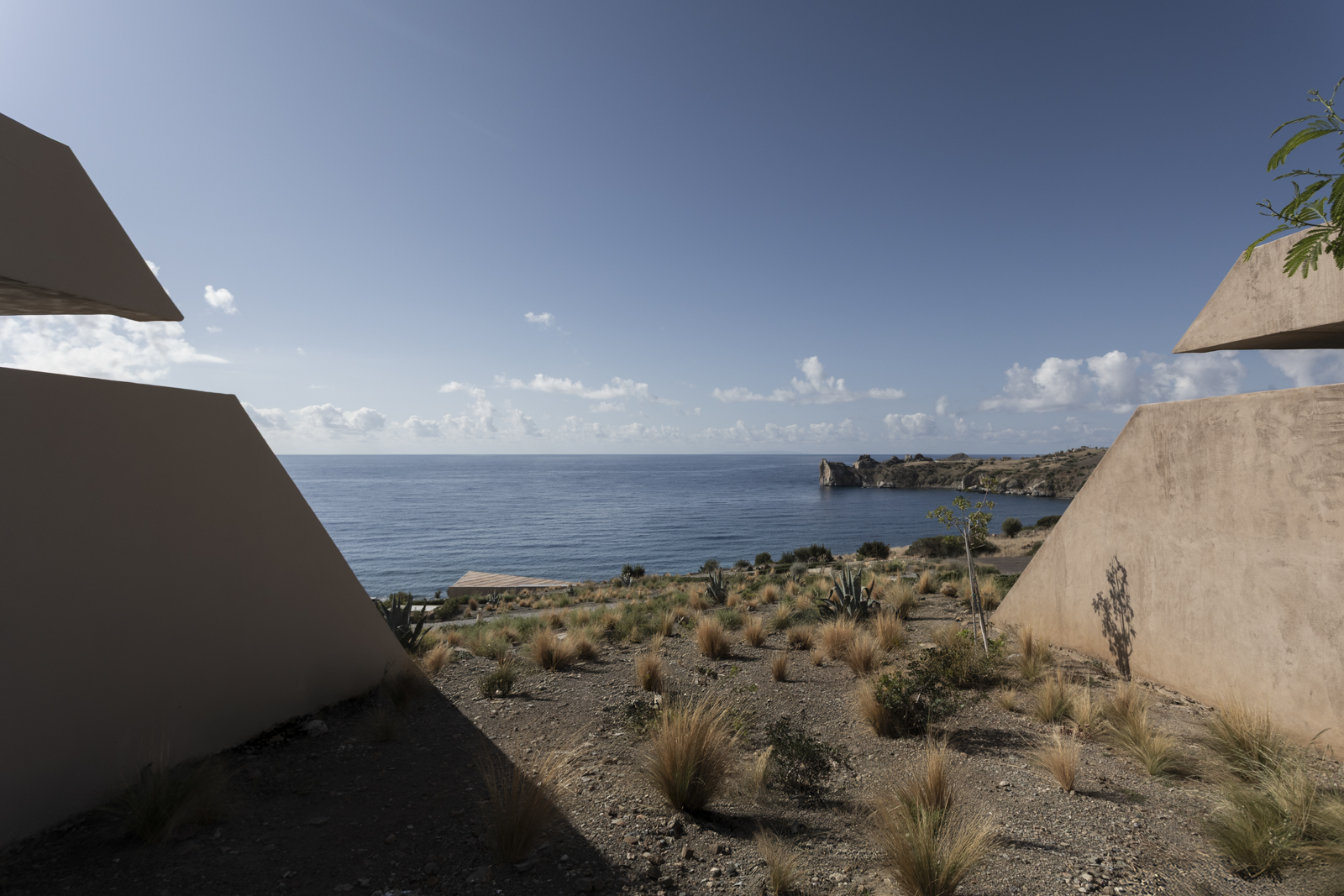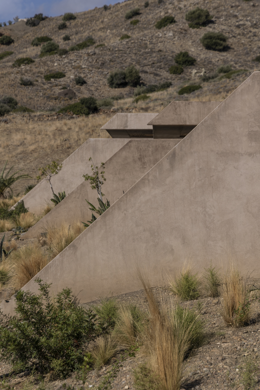 Το έδαφος λειτουργεί ως στέγη, τοπίο και κέλυφος ταυτόχρονα, επιτρέποντας στην πλαγιά να διατηρήσει τη χωρική και οπτική της συνέχεια.