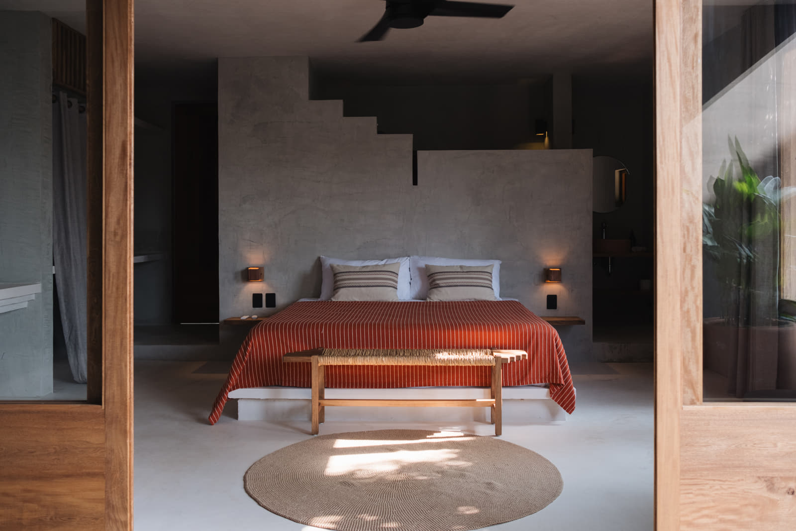 Each of the 9 rooms prioritizes spatial quality, offering more generous spaces than typical hotel rooms, with ample areas for lounging, working, jungle-like terraces, and, in most cases, private plunge pools.
