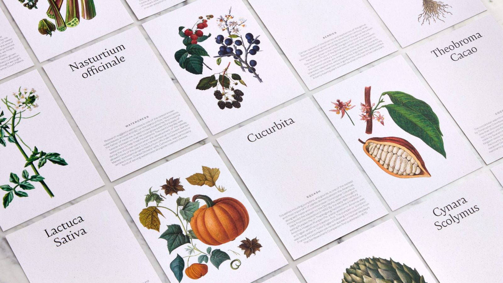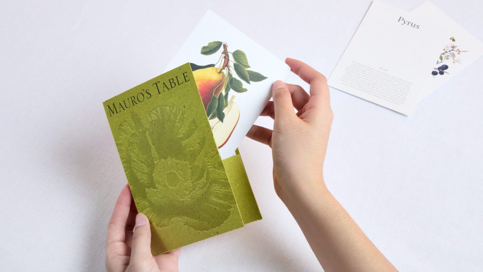 Mauro Colagreco’s presence is embodied in both his namesake restaurant and the intimate Mauro’s Table, where Greenspace created a refined logotype that echoes the chef’s signature and paired classical typography with menus printed on corn-derived seed paper and recycled grass, embossed with a poppy motif. At Mauro’s Table menus are replaced with illustrated botanical keepsake cards to represent each course.