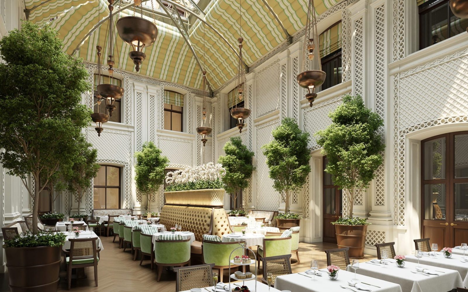 Saison, nestled beneath the restored glass atrium, presents Mediterranean all-day dining in an indoor garden-style setting where menus evolve with the seasons; each quarter is accompanied by Riviera-inspired illustrations by Edith Carron rendered in bespoke palettes for spring, summer, autumn and winter.