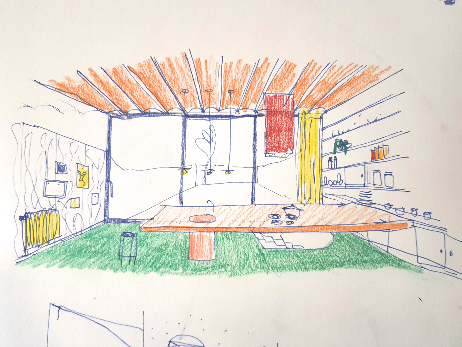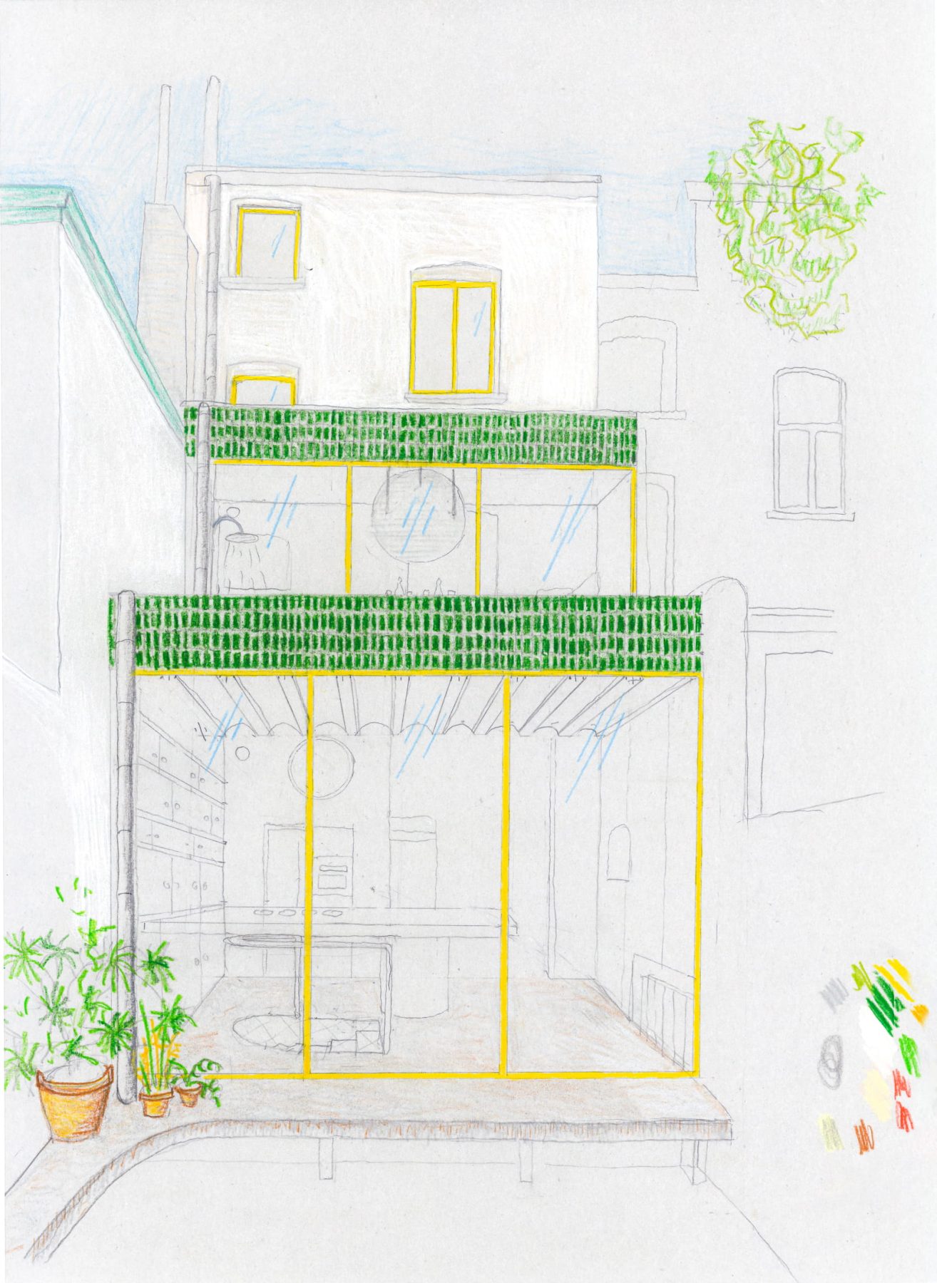 The quite strict building regulations in the area lead us to a rather narrow new volume at the back: a kitchen on the ground floor, and a narrower bathroom on the first floor.