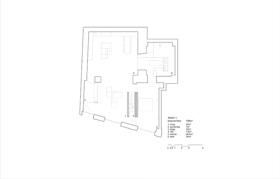 The project is a contextual dialogue with history, the house is 170 years old. The historic, massive stone walls were the starting point for applying new contemporary forms of living – fresh typologies: 5 small apartments in the “house” and 4 residential ateliers in the former workshops.