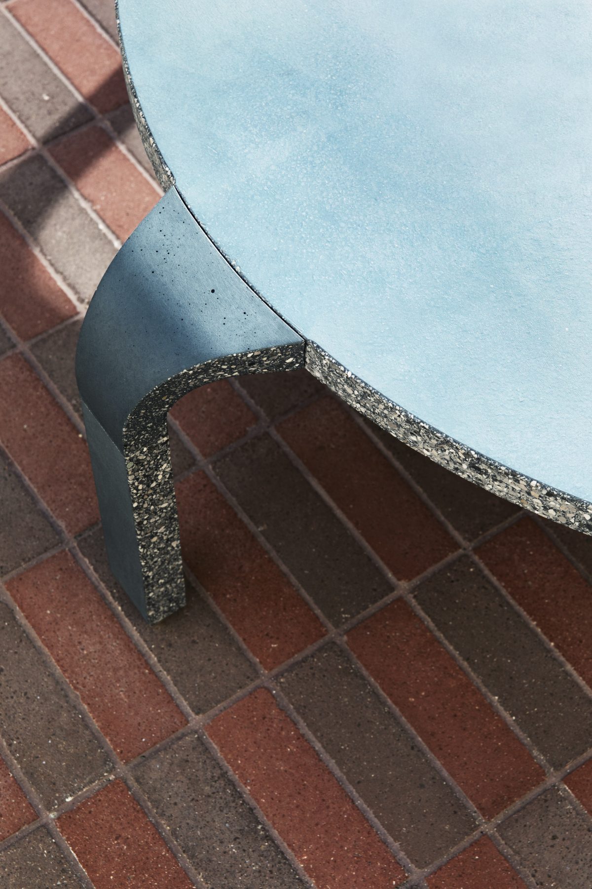 Composed of sand, cement, and water with brushed aluminium detailing, the piece reinterprets traditional craftsmanship through a contemporary sculptural language.