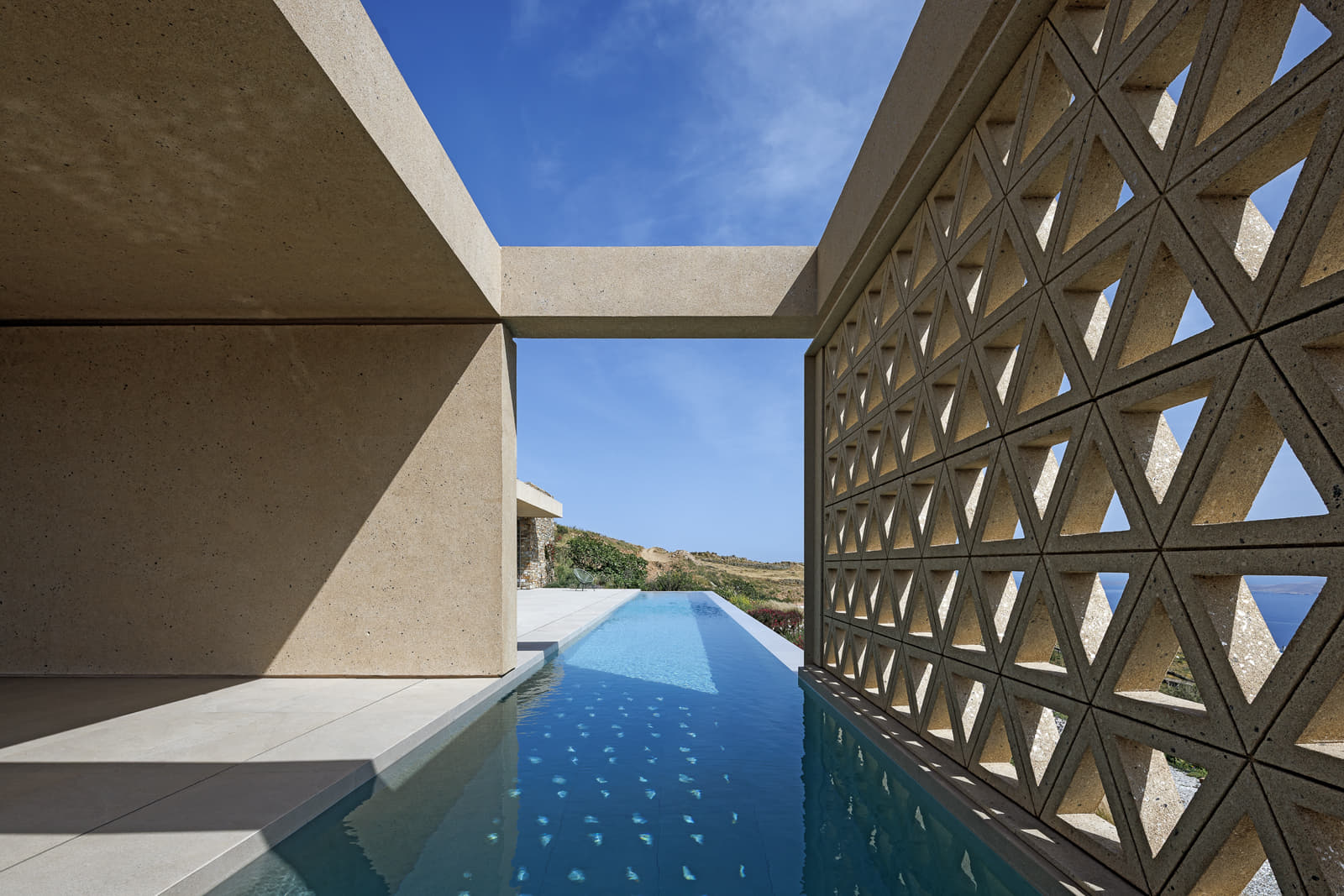 A building that opens toward the sea while blending into the landscape. KATERINA VALSAMAKI ARCHITECTS designs a holiday residence in Tinos, thoughtfully combining and contrasting different architectural elements.