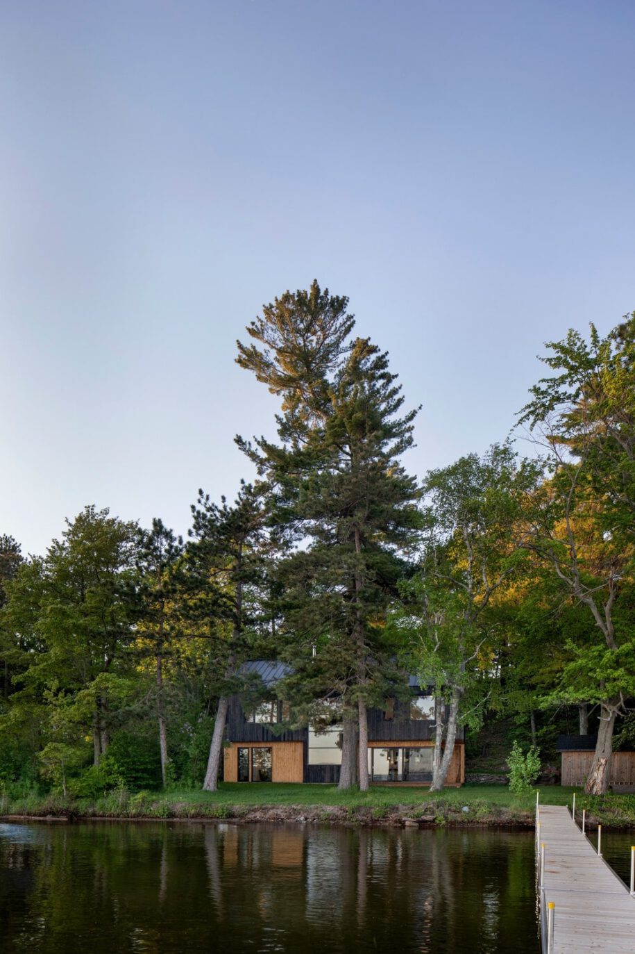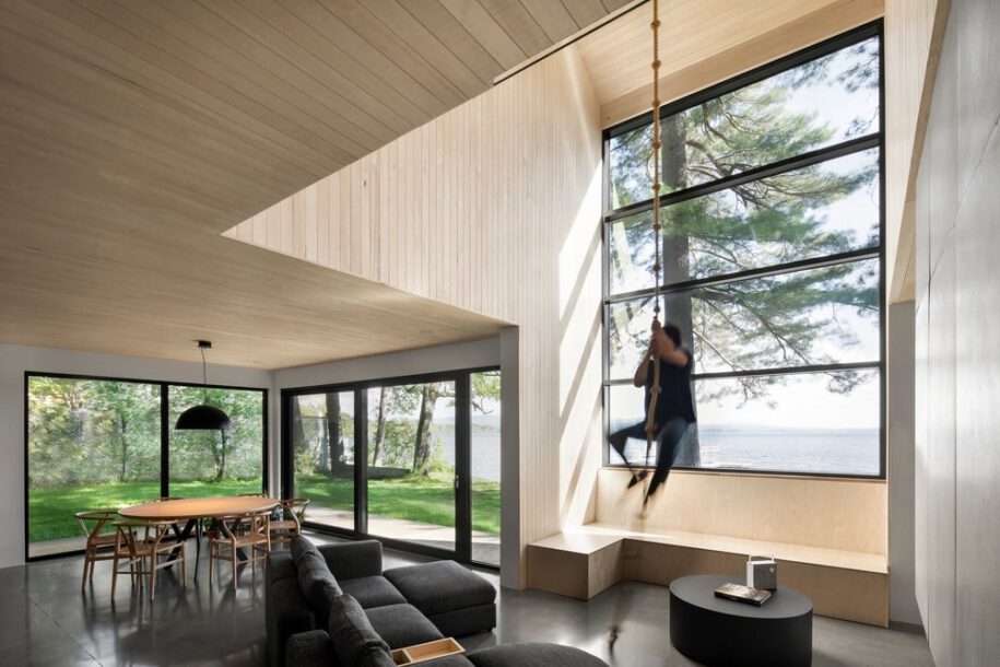 Atelier Schwimmer designed Lakeside Cabin on the banks of Lake Brome in Knowlton, Canada as an archetypical house for two brothers who seek to reconnect with nature and share quality time with friends as part of their fast-paced city life.