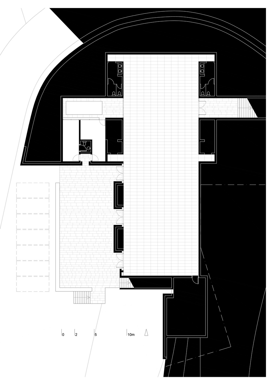 The 500m2 multipurpose hall, designed by Maroun Lahoud, is naturally lit by five large bays, opening to the courtyards and the landscape, and is served by several annexes gliding in the interstices of the structure.
