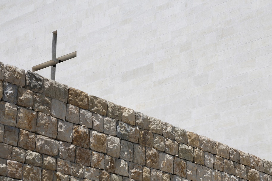 The liturgical codes are expressed by the number of openings. Three light niches along the lateral circulations refer to the Trinity; disposed on both sides, with two openings each, they totalize to 12 openings, referring to the way of the cross.