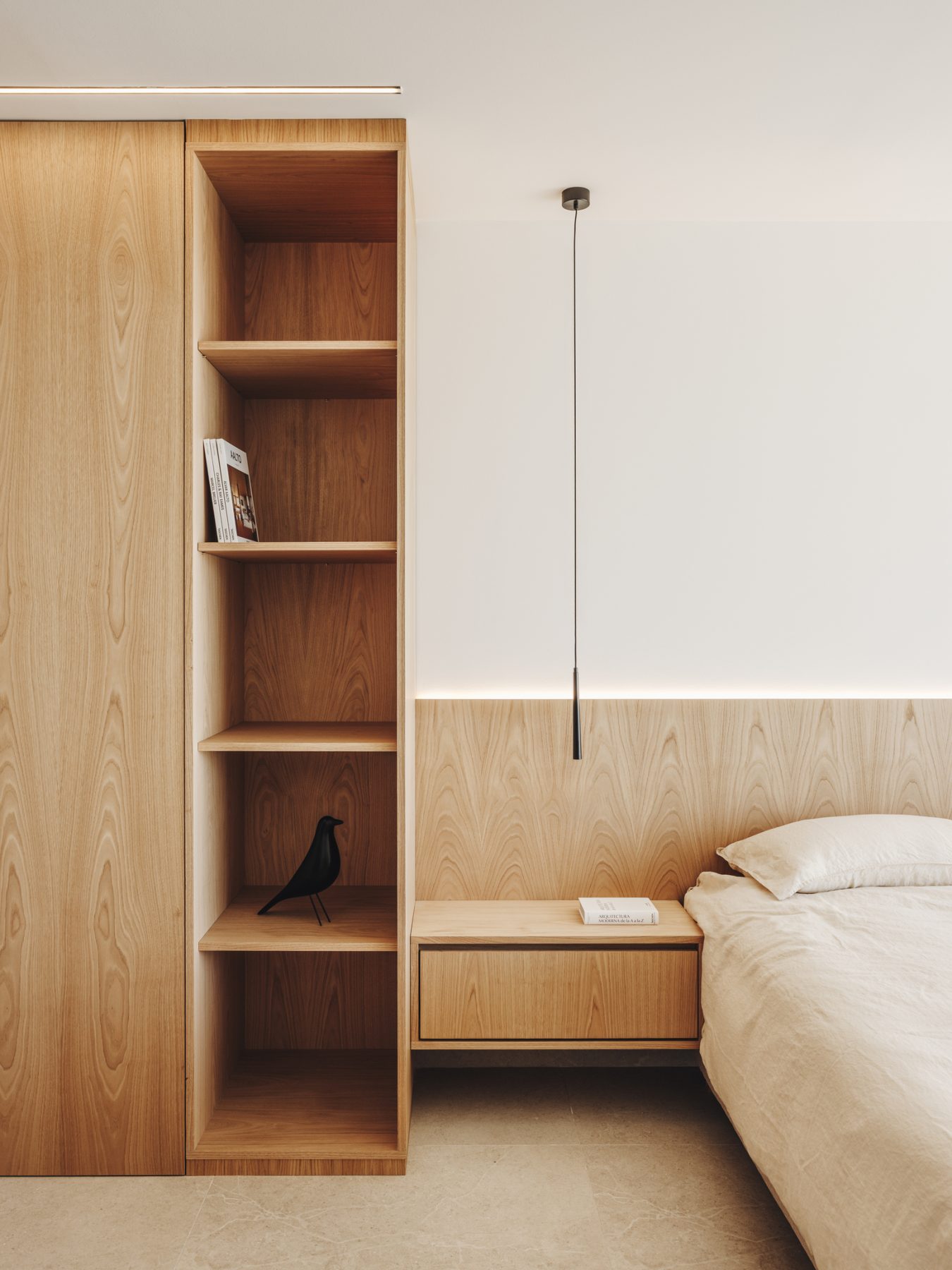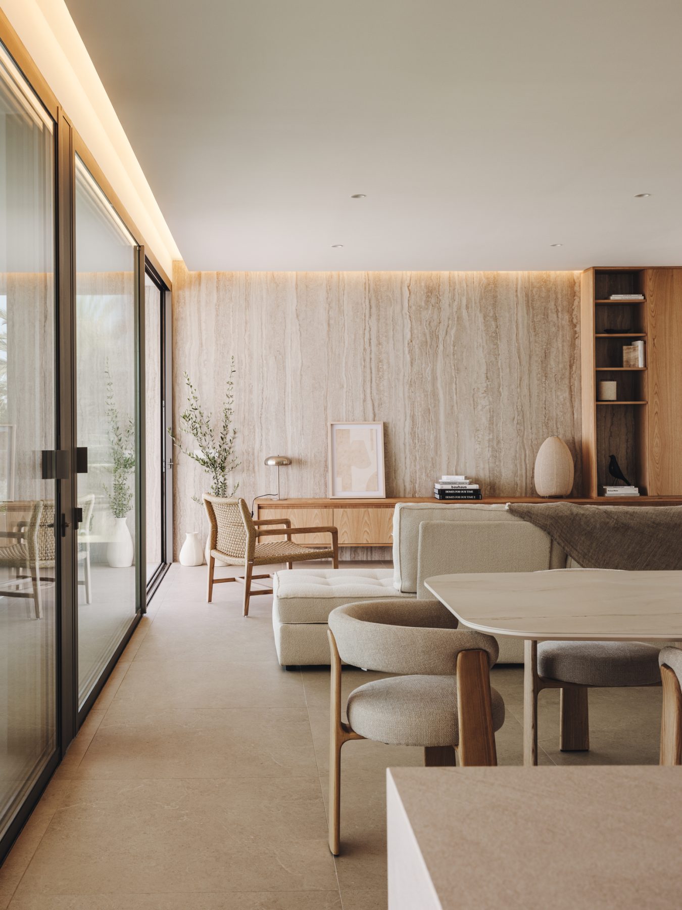 Inside, the design language is pared-back and sensorial. Integrated, indirect lighting accentuates textures without drawing attention to itself, enhancing the overall atmosphere without disrupting the architectural integrity.