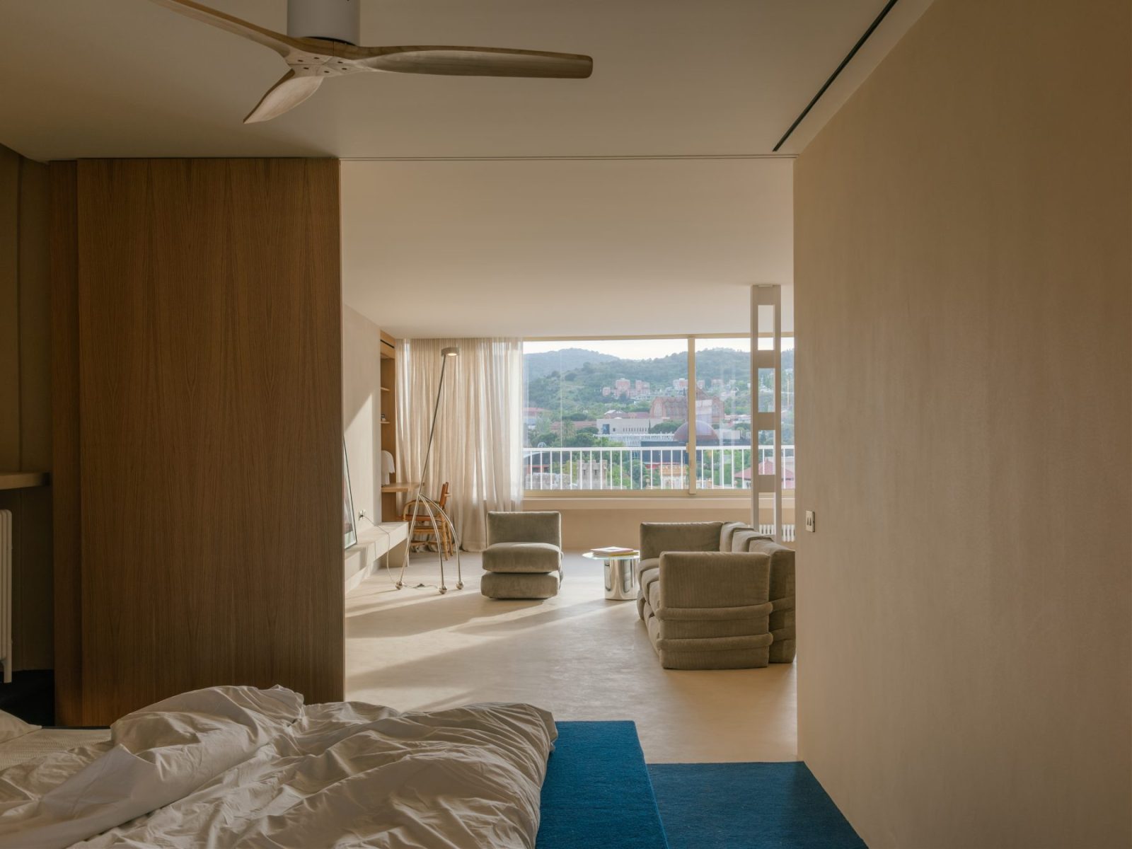 In Barcelona, Spain, MH.AP Studio designed Ana & Oscar’s 190 m² penthouse through a deeply collaborative process, designing an open-layout home that responds to the surrounding Mediterranean landscape overlooking Mount Collserola and the sea. A north–south plan, sliding timber panels, and a repeated material palette dissolve boundaries, shaping a living environment defined by openness, light, and seamless spatial flow.