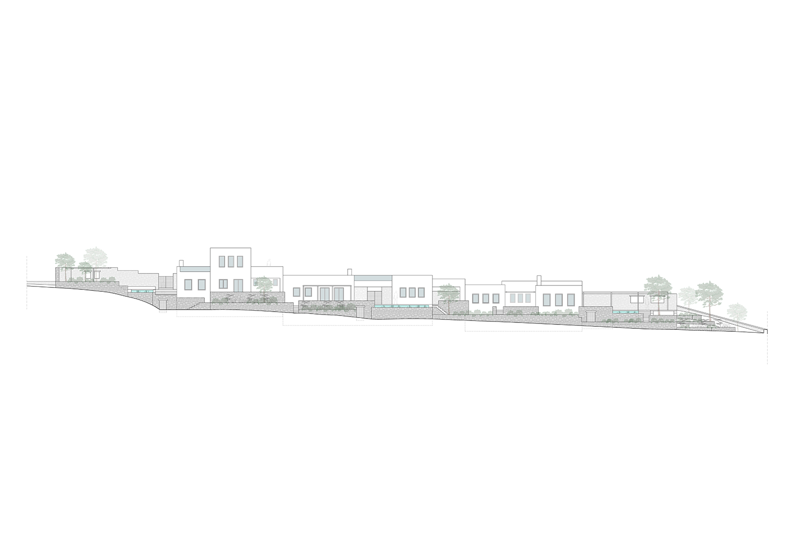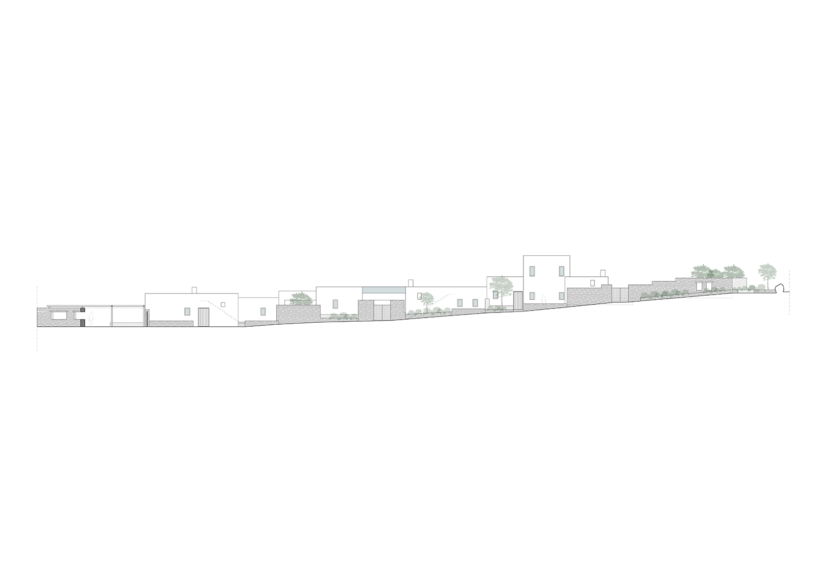 The built environment is complemented by the landscape design, which blends with and showcases the Mediterranean setting. The gardens feature examples of local flora—from olive and cypress trees to grapevines, fruit trees, herbs, and aromatic shrubs. To accommodate their irrigation requirements and the pools’ water supply, several water tanks have been added to harvest rainwater from the roofs.