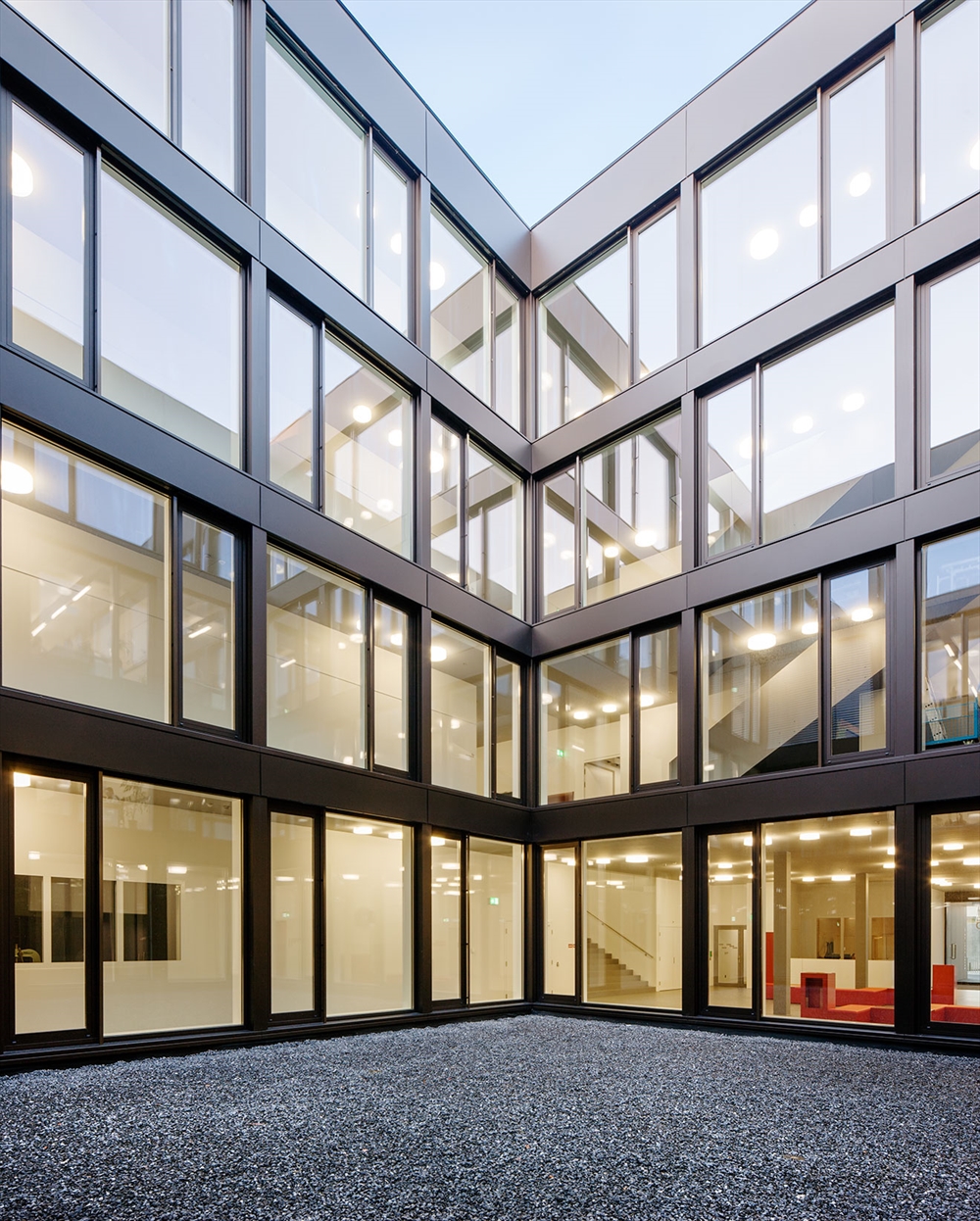 Furthermore the construction is based on a hybrid system of wood and concrete that allows a reduction of grey energy, an increased level of flexibility and many opportunities for later adaptation.