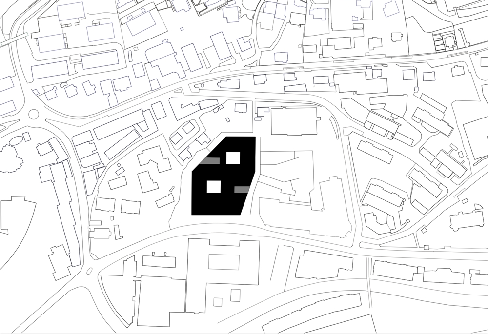 On a spatial level, the building is integrated as a significant pole in the urban morphology. Beginning with a regular interior grid of 7.20 x 7.20 m, its sculptural design reacts to the special characteristics of the immediate surroundings. That results in a structuring of the location, not only in the case of the spaces of the building’s interior, but also in terms of the public exterior facilities. Due to the exchange with the new part of the city, the existing buildings and the exterior spaces create a new identity and coherence that enhances the entire quarter.