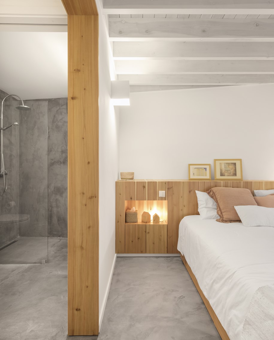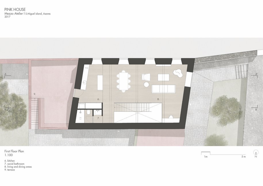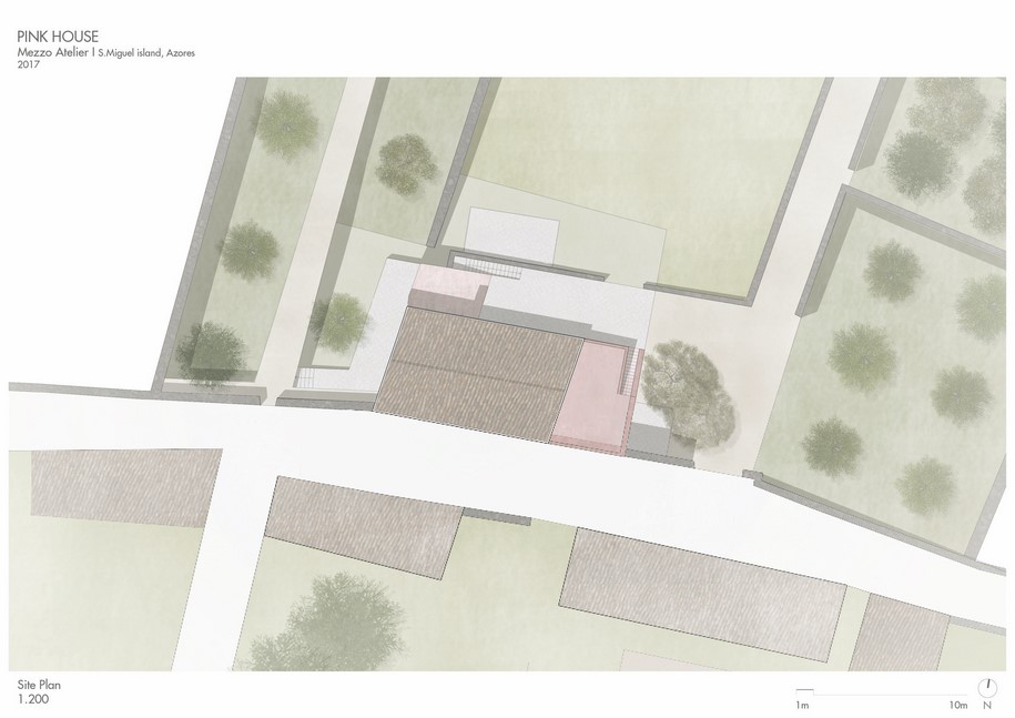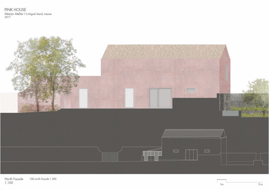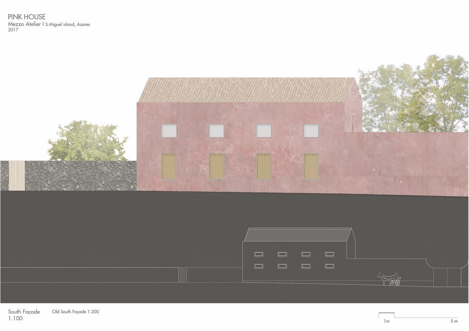 The ochre was traditionally used to frame windows and doors, at Pink House it was used instead on the bedrooms interior shades and kitchen, adding a new kind of relation between inside and outside views.