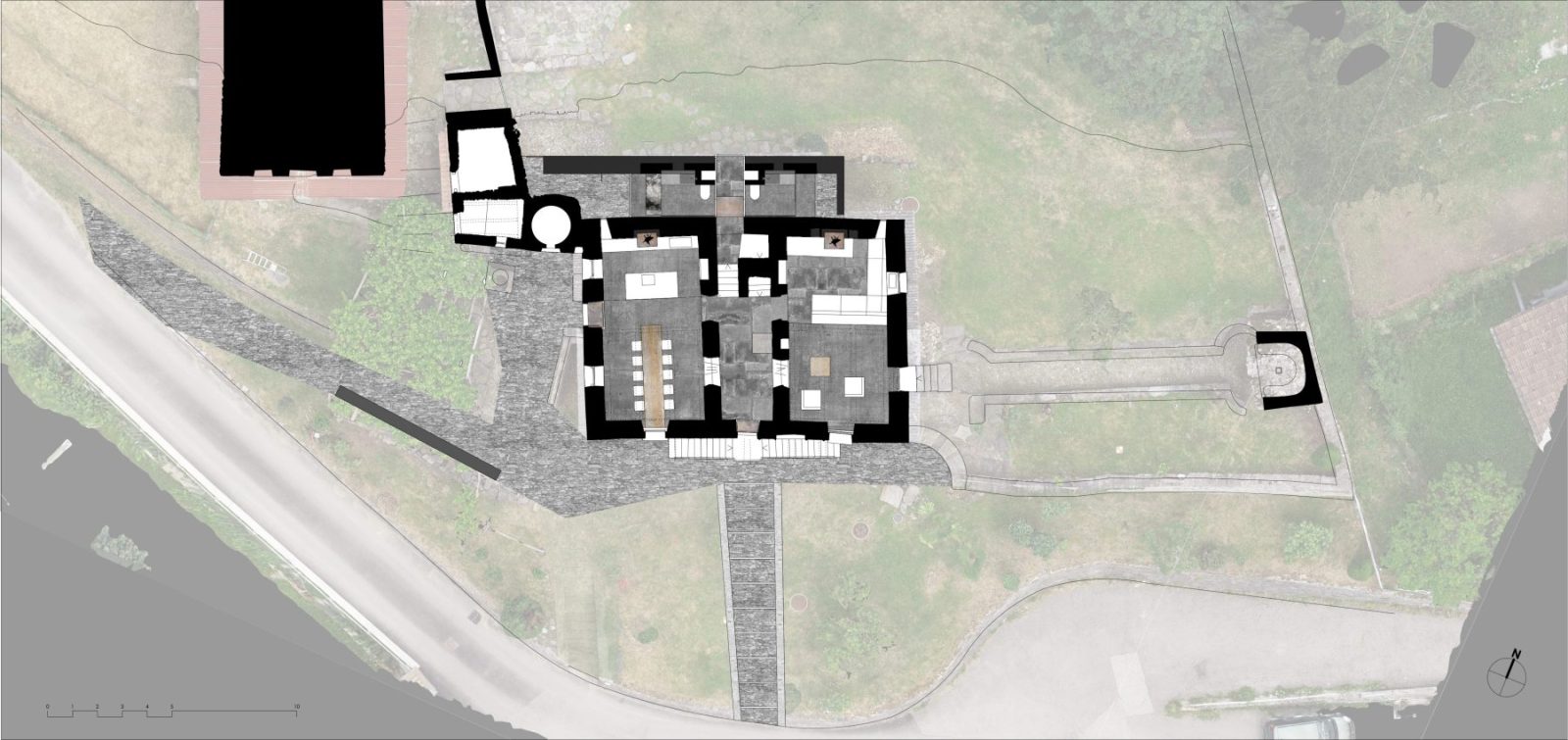We consider the north-facing extension from a more recent period in a “historicizing style” to be inappropriate to the original historical context and devalues the house “Romagnolo”. However, the location of the bathrooms and the technical room below is functionally correct.